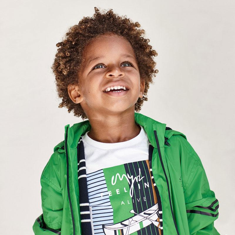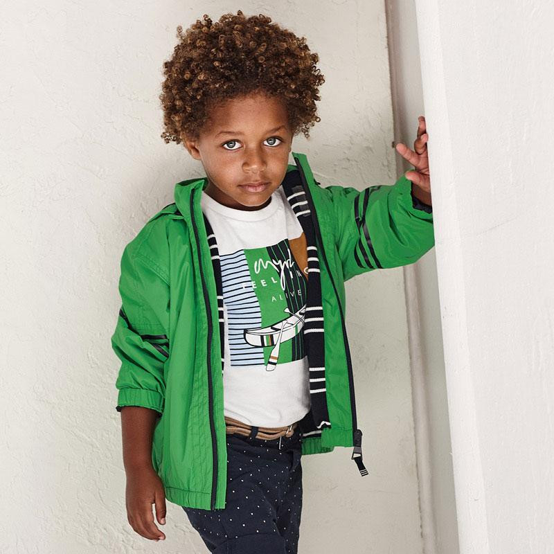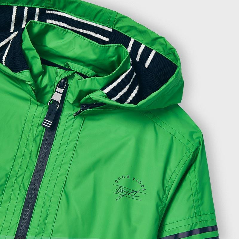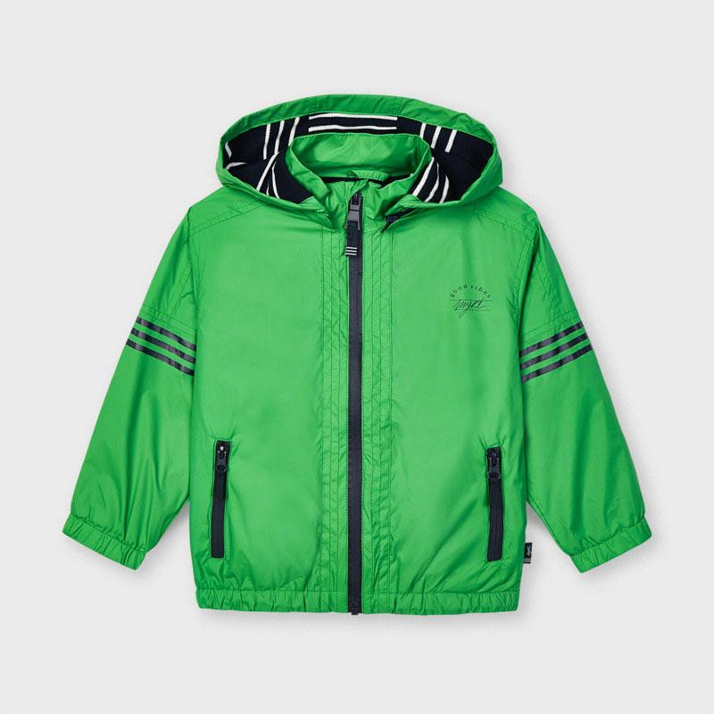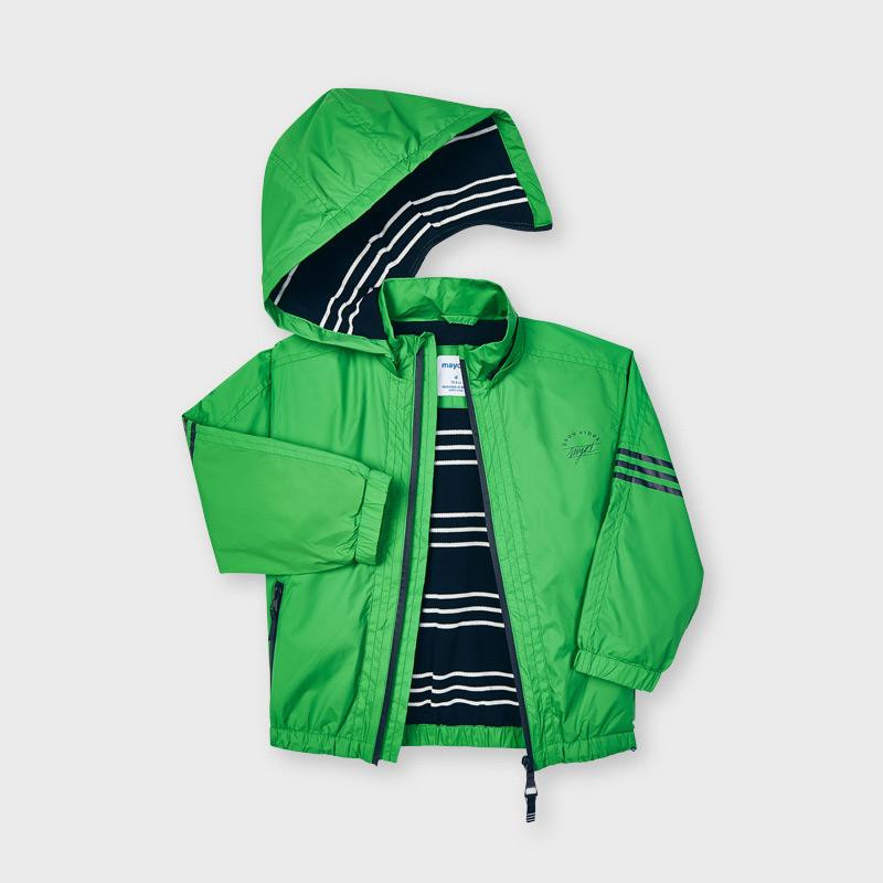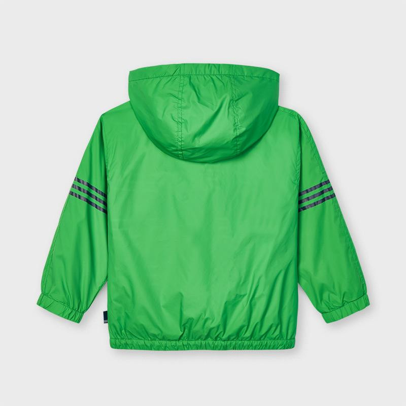 Geaca fas antivant pentru baiat ,captusita la interior cu bumbac, gluga detasabila , inchidere fata cu fermoar, buzunare laterale cu fermoar. Brand Mayoral Spania
