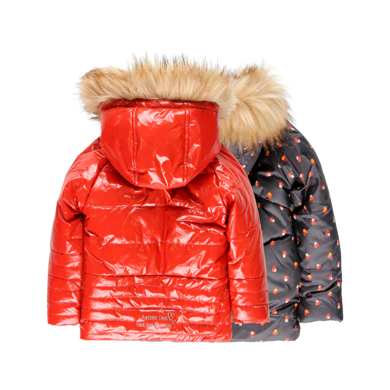 Geaca parka Boboli fete 4-16 ani reversibila, gluga cu blanita pe margine, inchidere cu fermoar, buzunare , calduroasa si foarte usoara, puf siliconat umplutura. Brand Boboli