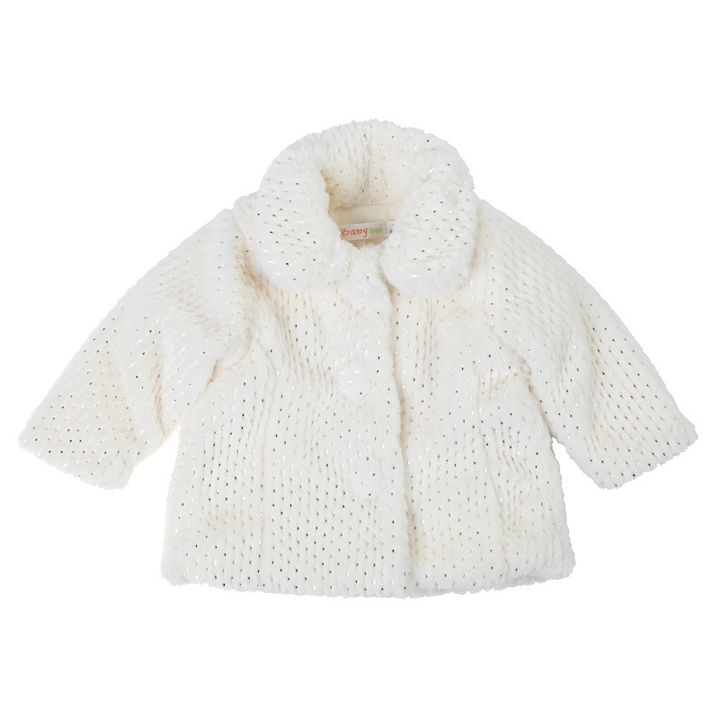 Haina superba din blanita pufoasa cu paiete aurii pentru fetite de la Babybol, deschidere cu nasturi imbracati in material pe fata.