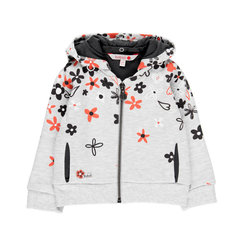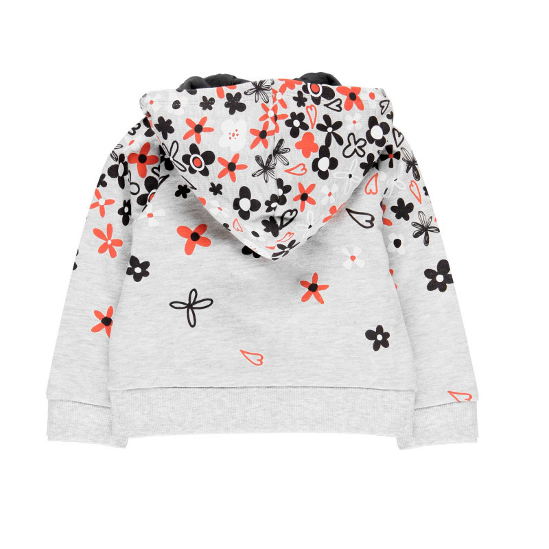 Hanorac bumbac fete cu gluga, imprimeu flori, gri, Boboli
