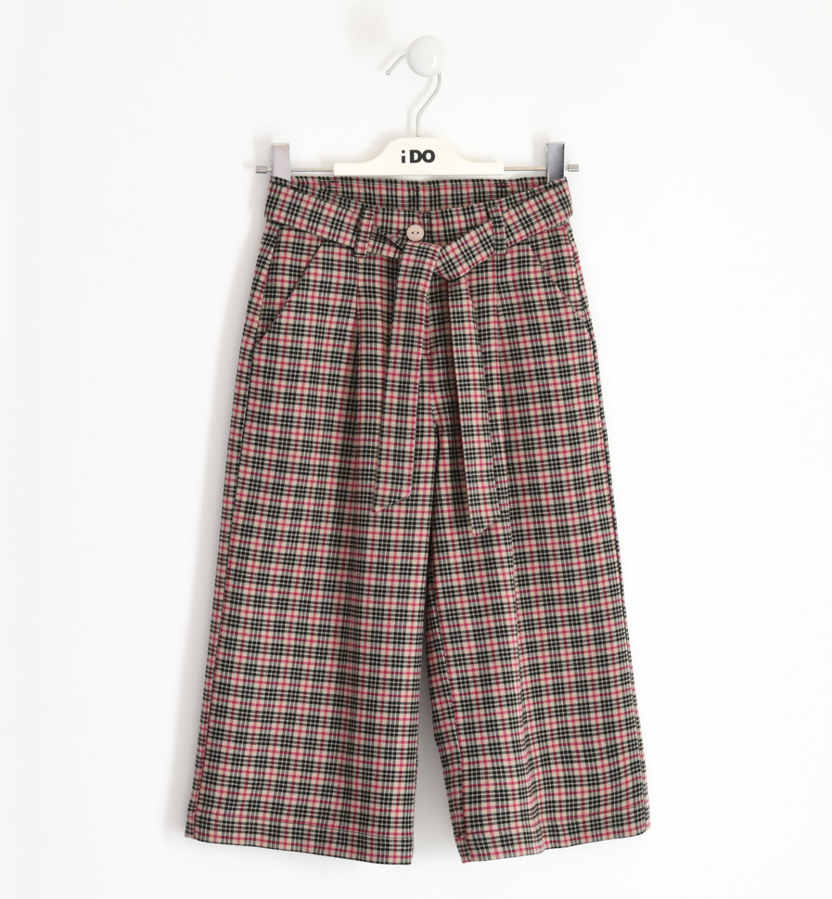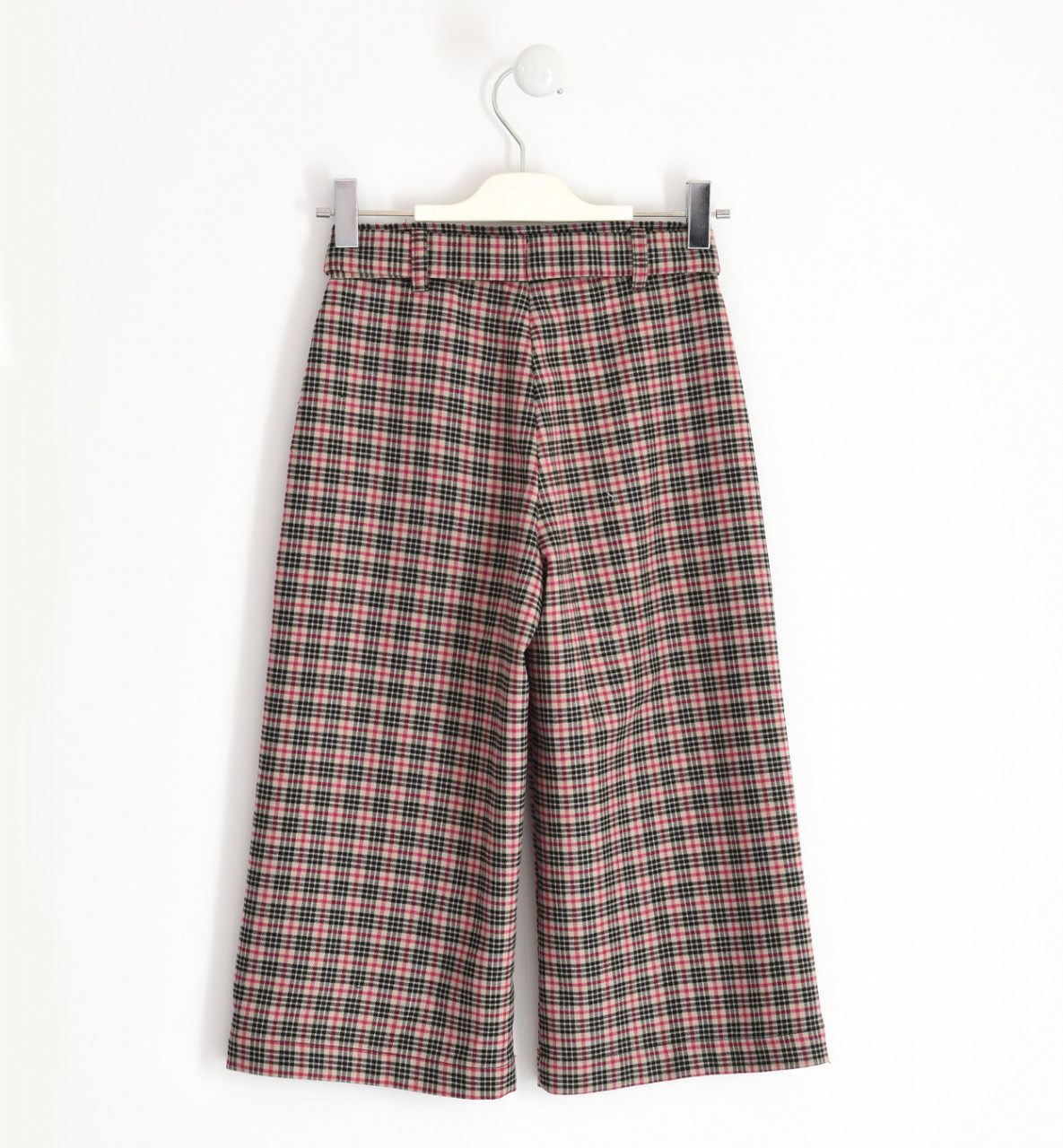 Pantaloni eleganti din stofa pentru fete, 3/4 carouri fine, centura din material textil , reglabil in talie, material comod.Brand iDOMade Italia