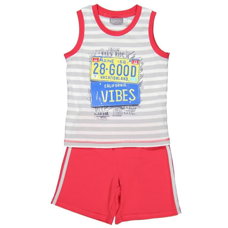 Pijama baieti Boboli, maieu cu print digital si pantalon scurt din bumbac moale.