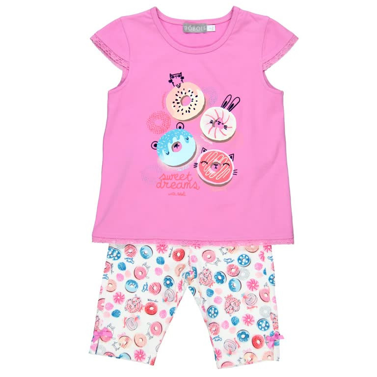 Pijama bumbac fete maneca scurta Boboli,imprimeu multicolor, pantaloni 3/4.Compozitie : 100% bumbacBrand Boboli Spania