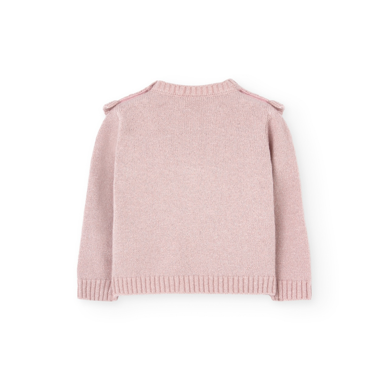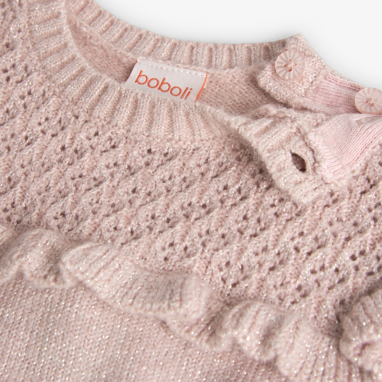 Pulover tricot fetite cu volanase, roz, model partea superioara, fibre metaliceargintii,  brand BOBOLI.