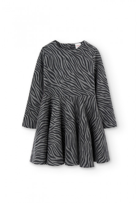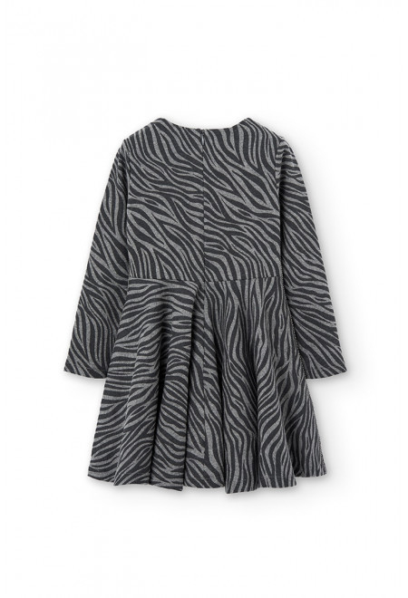 Rochie elegante pentru fete 8-16 ani , animal print , fusta clos cu vipusca catifea, inchidere cu fermoar, gri.Brand Boboli