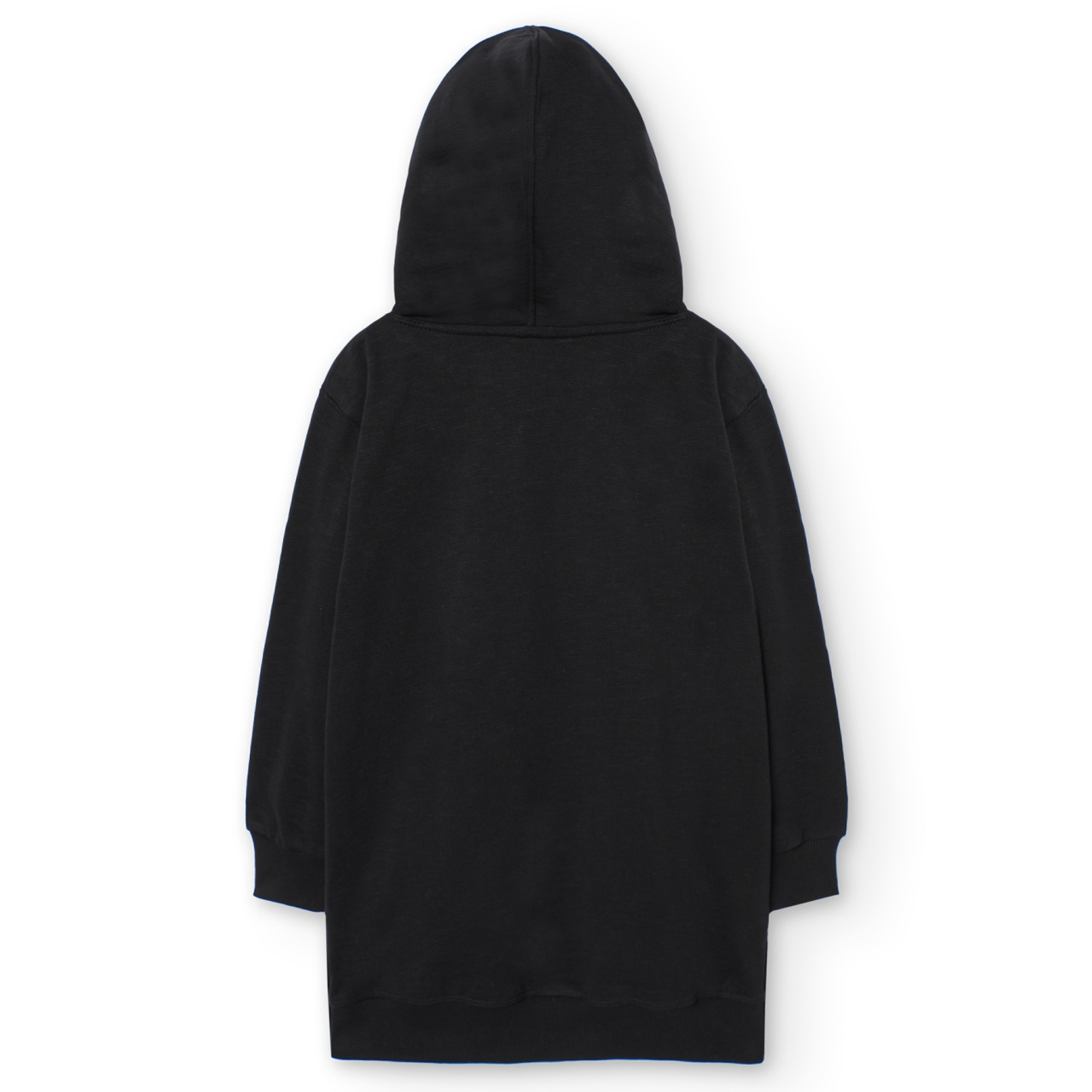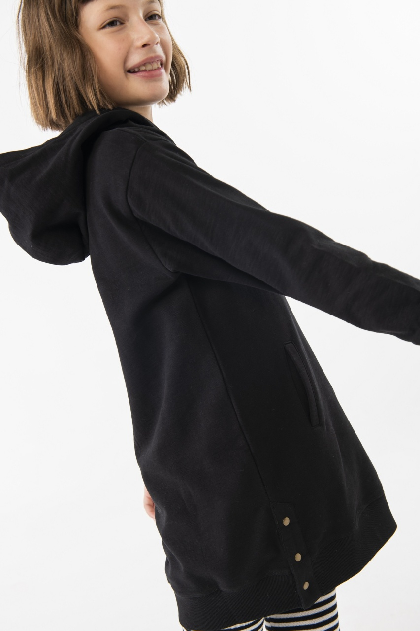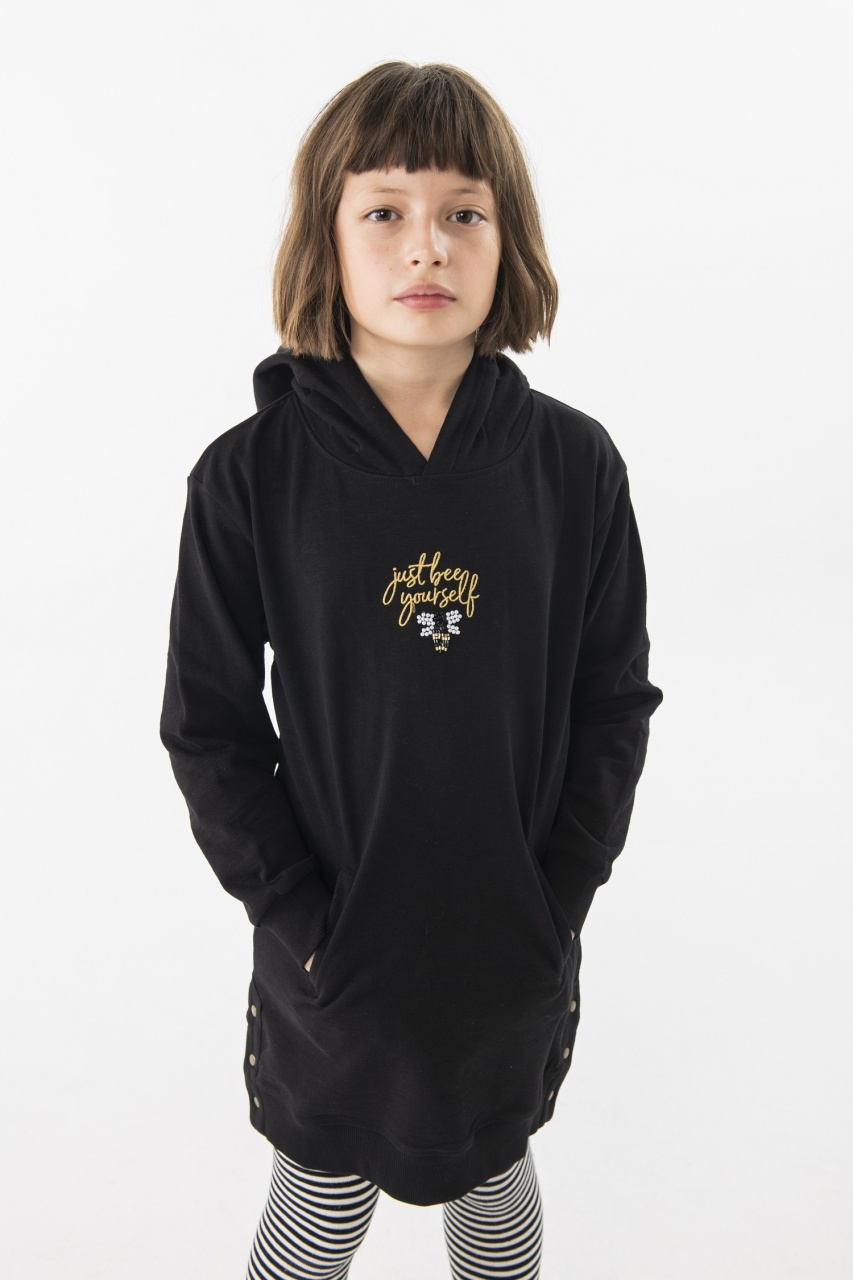 Rochie maneca lunga fete 4-16 ani, bumbac better cotton, gluga, broderie pe fata, model fluture din perle si margelute, neagra, brand Boboli.