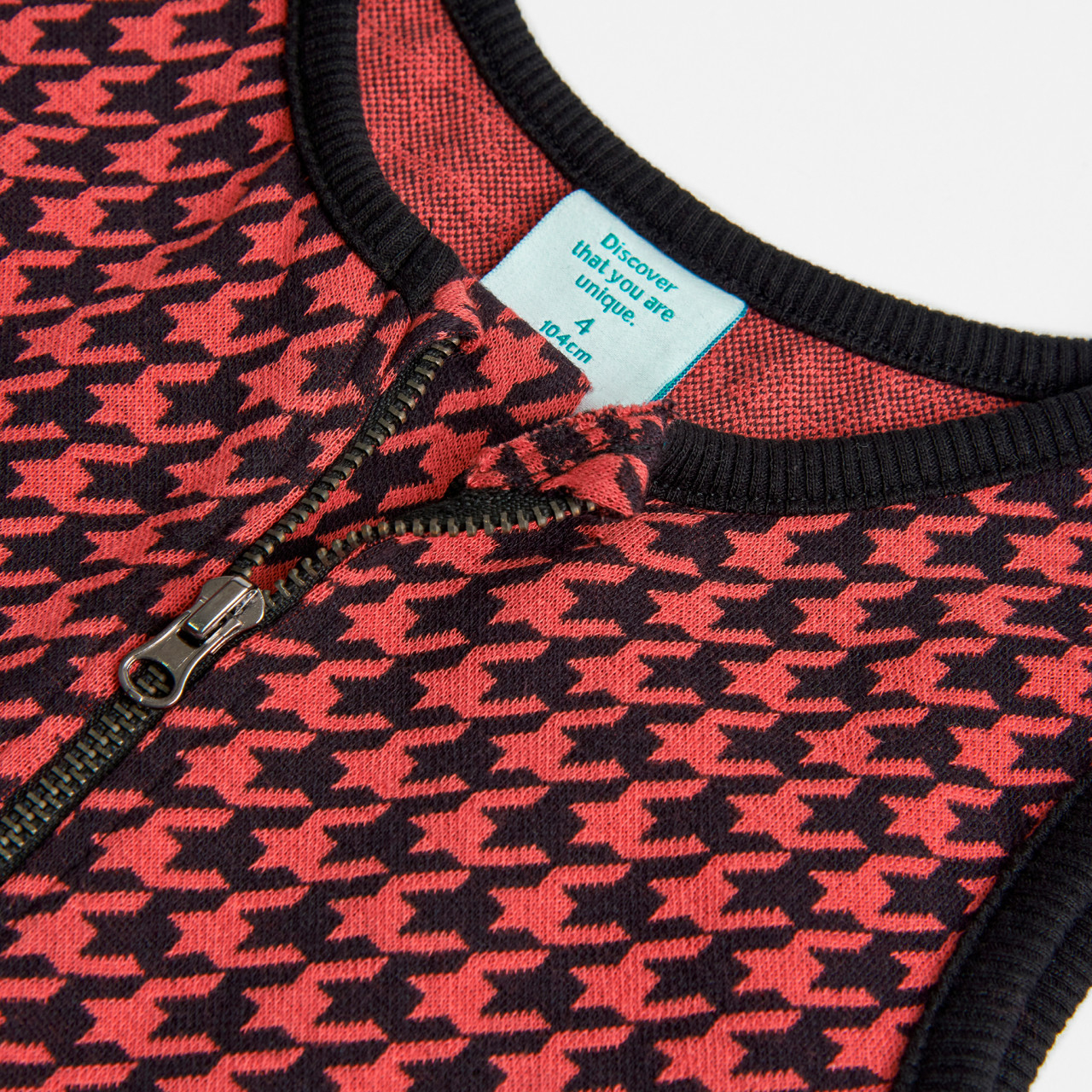 Sarafan din tricot fin pentru fete 4-16 ani, model geometric, fermoar pe fata, buzunare, dunga argintie pe margine, roz/negru, material strech. Articolul face parte din colectia Rock.