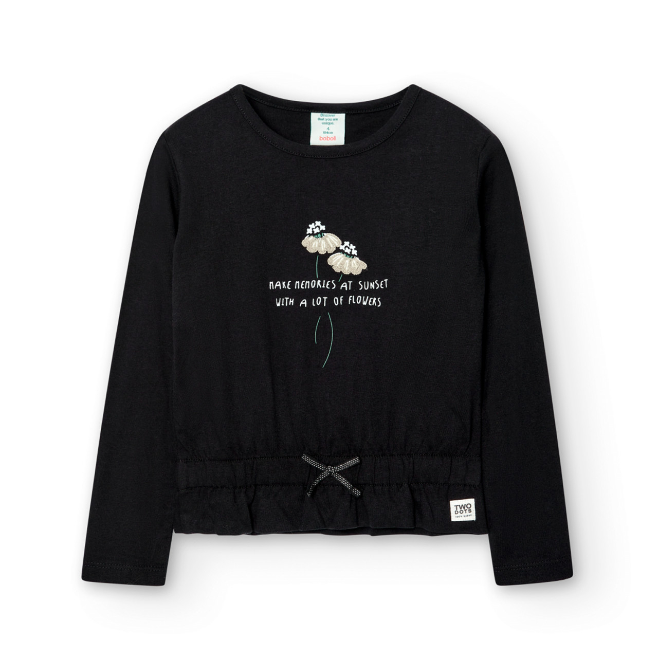 Tricou maneca lunga fete, bumbac, negru, Boboli