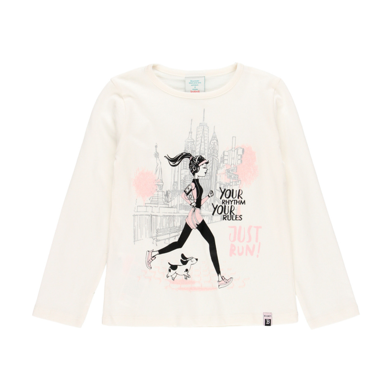 Tricou Boboli maneca lunga fetite din bumbac cu print fetita alergand, new york.Compozitie 100% bumbacBrand Boboli