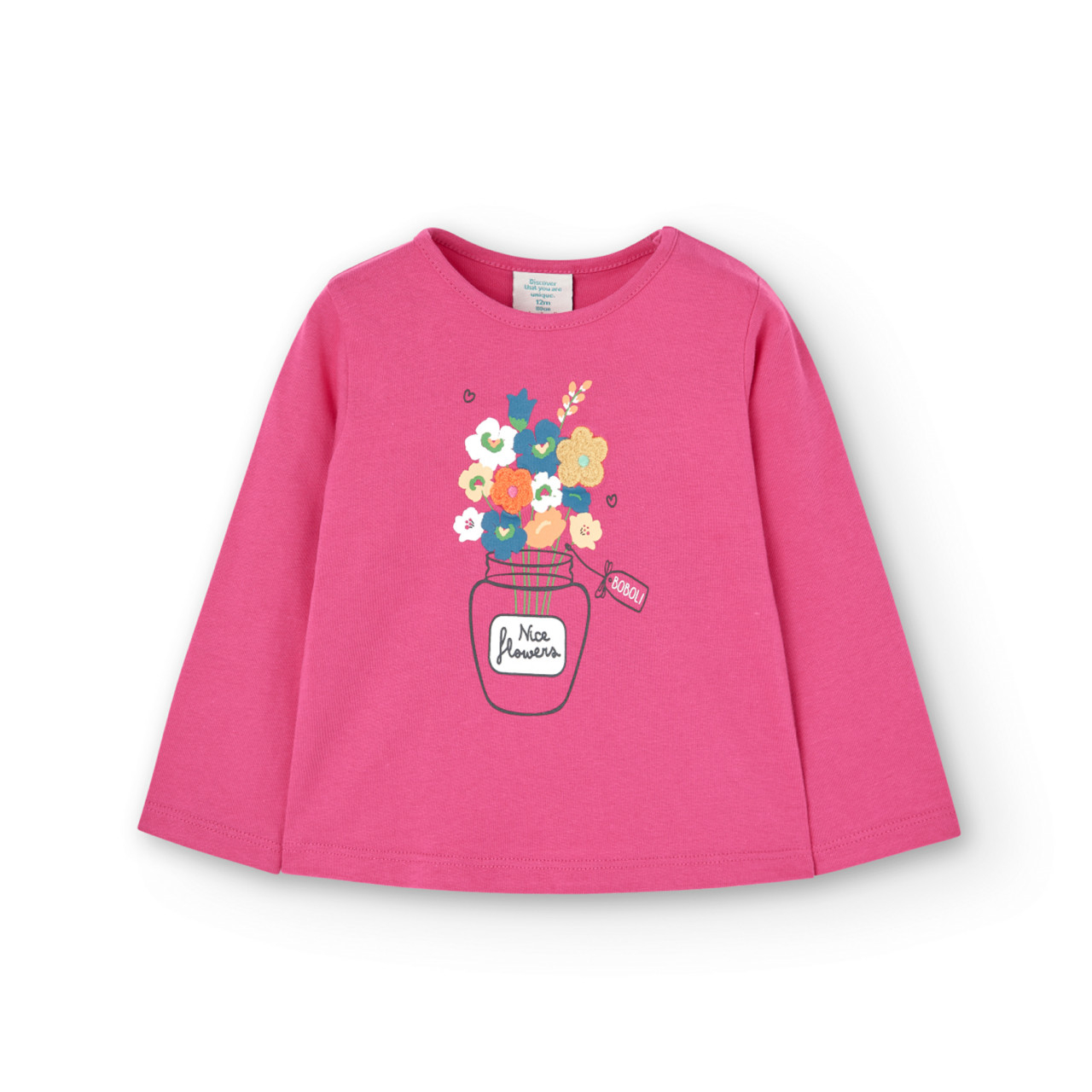 Tricou maneca lunga fetite, imprimeu floral, roz fucsia, Boboli