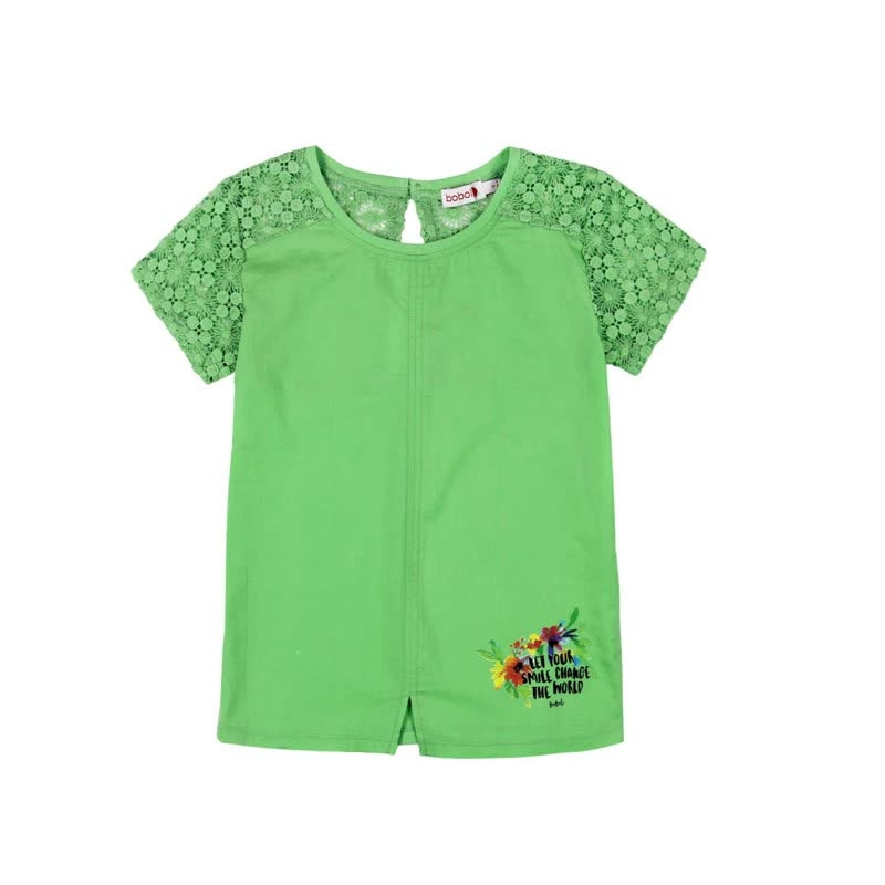 Superb tricou pentru fete de la Boboli de culoarea smaradului, combinatie de broderie cu jersey.Made Spania