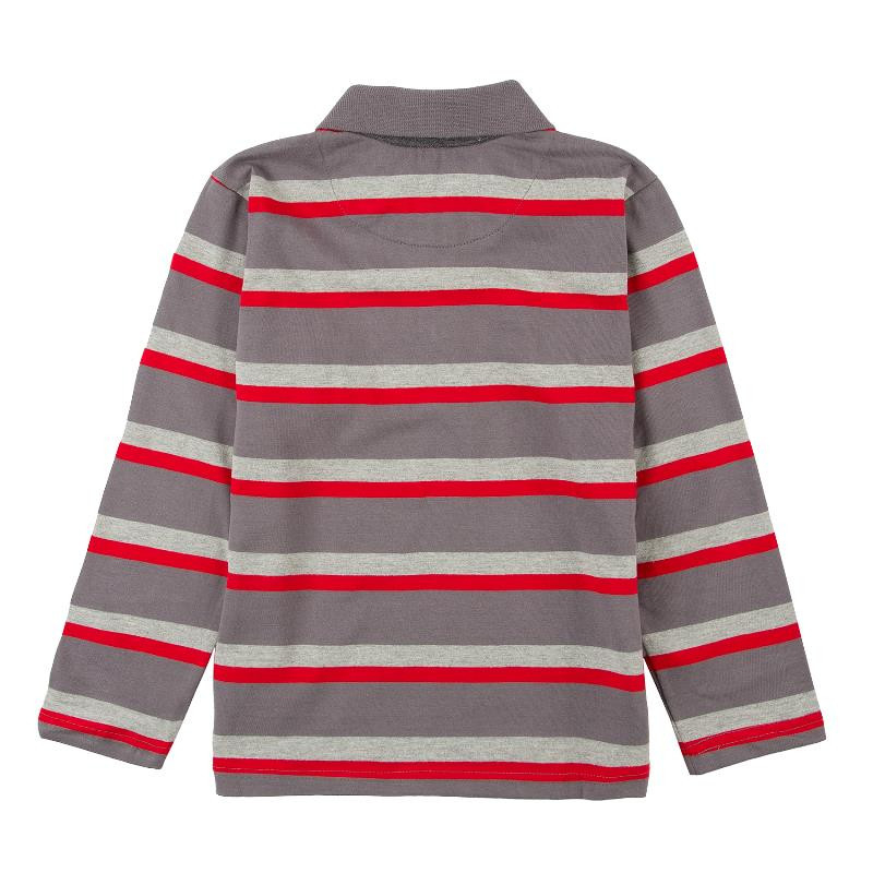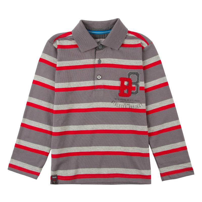 Tricou polo baiat cu dungi gri si rosii, , confectionat din bumbac moale, inchidere cu nasturi pe fata .Brand Boboli Spania