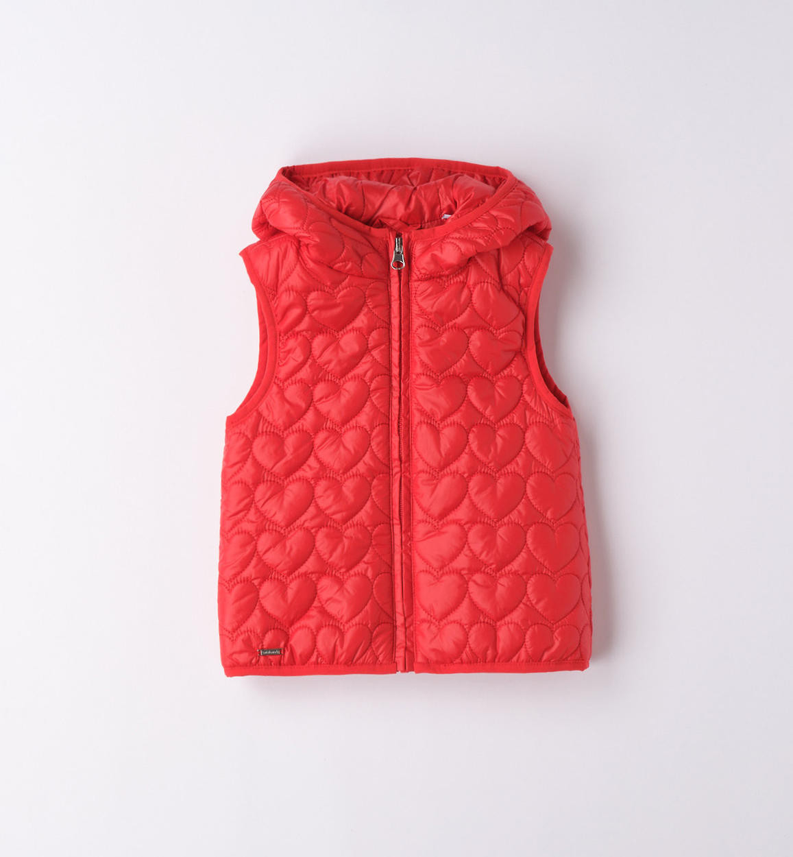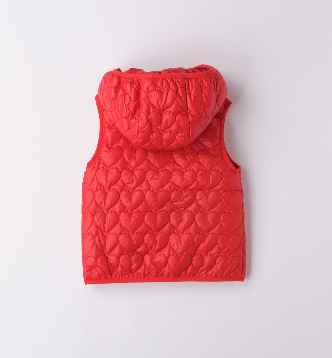 Vesta matlasata subtire pentru fetite, marca Sarabanda Italia, rosie cu inimioare, antivant, gluga nedetasabila.Compozitie 100% poliamidaMade Italia