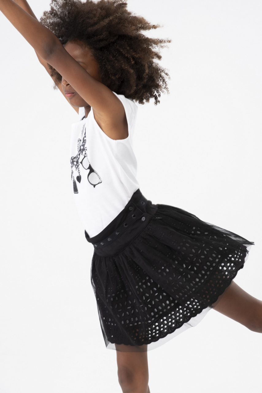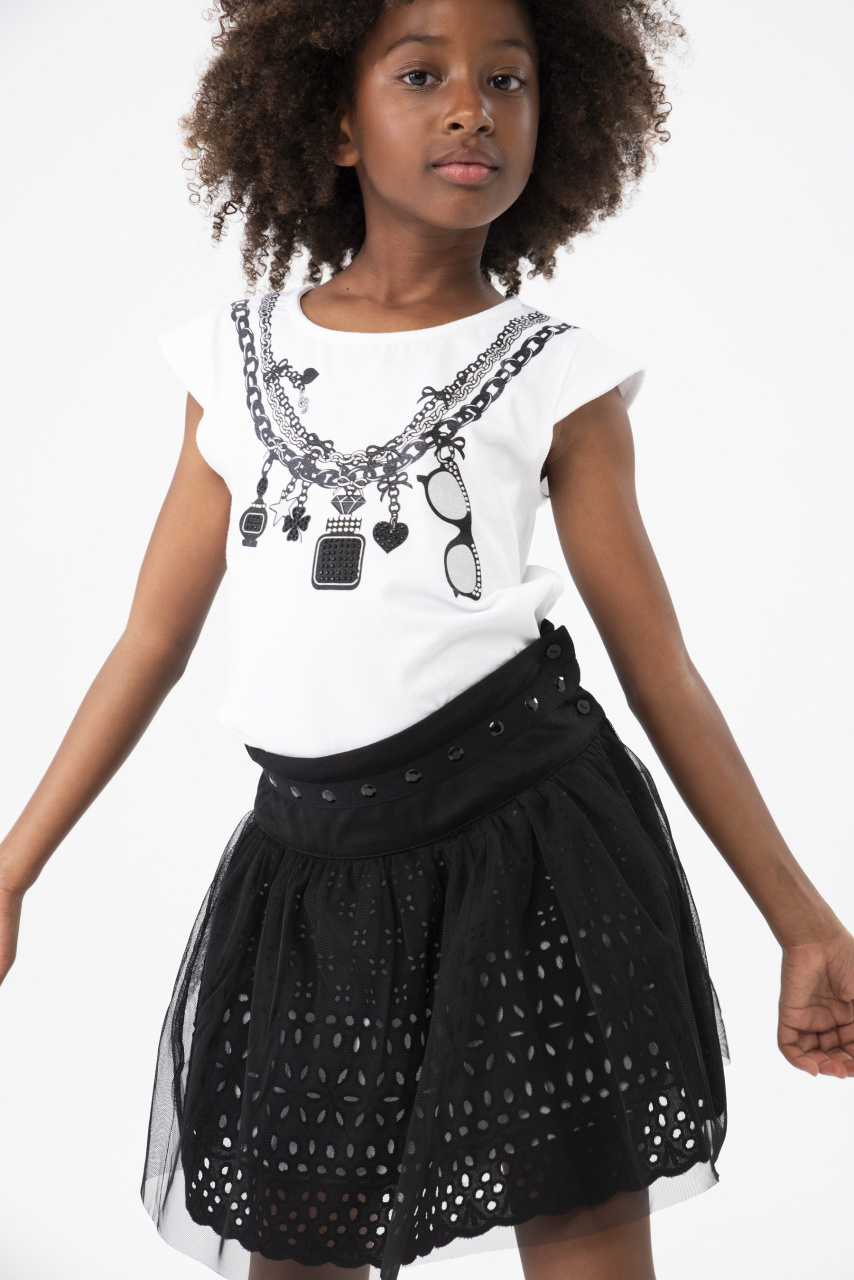 Această fustă din batiste brodată pentru fete este un articol de îmbrăcăminte ideal pentru sezonul de primăvară și vară. De culoare neagră, designul său uni și țesătura brodată o fac versatilă și ușor de combinat. Este disponibilă într-o gamă largă de mărimi, de la 4 ani până la 16 ani, ceea ce o face perfectă pentru fete de diferite vârste. Broderia delicată adaugă o notă de eleganță, făcând din această fustă o alegere excelentă pentru orice ocazie, fie că este vorba de o zi de joacă sau de un eveniment special.