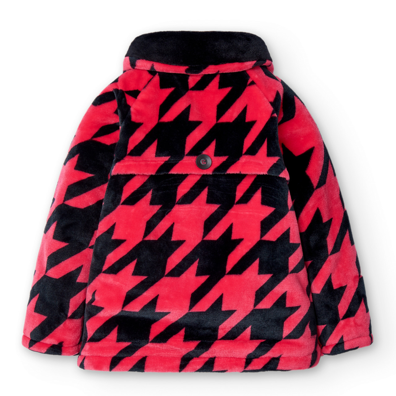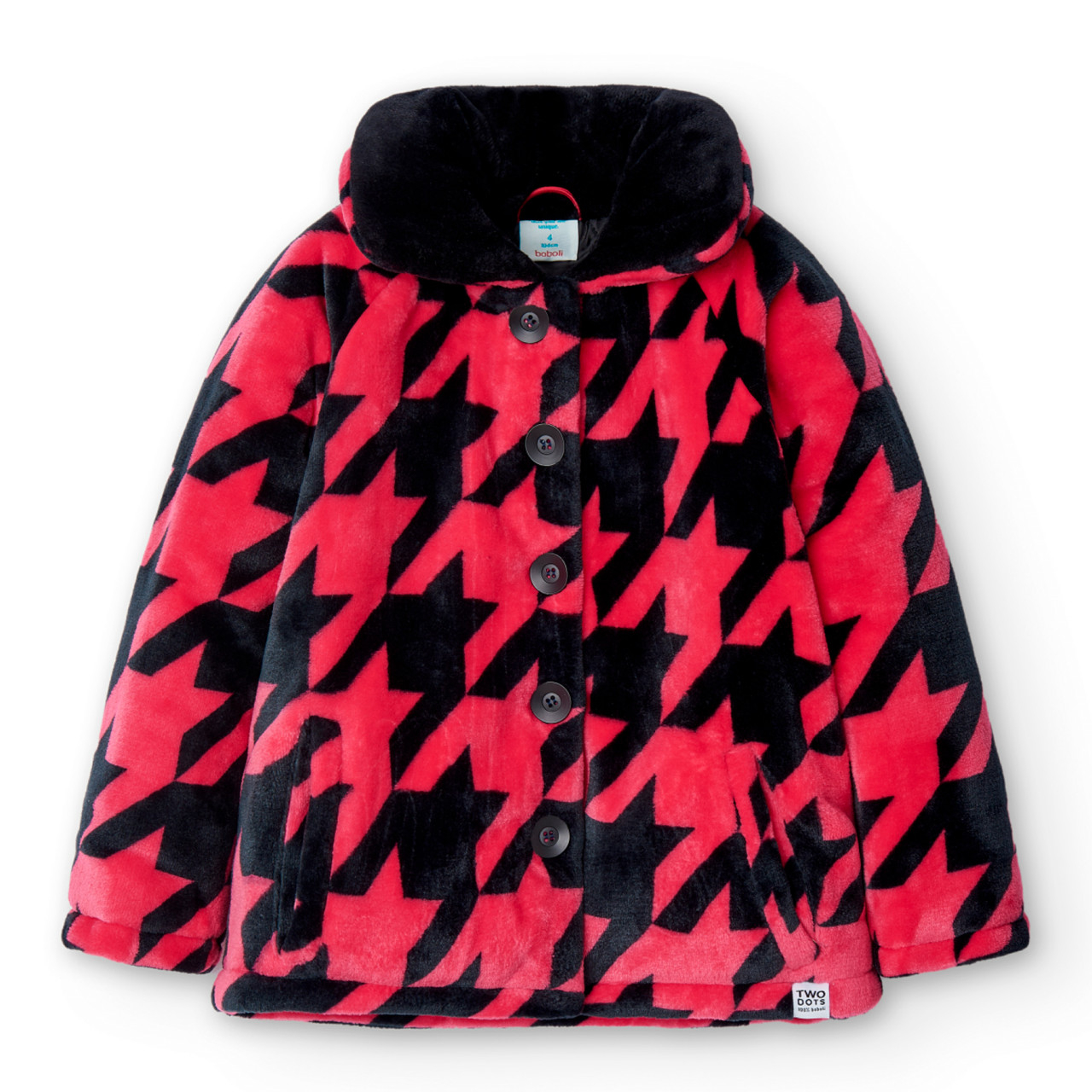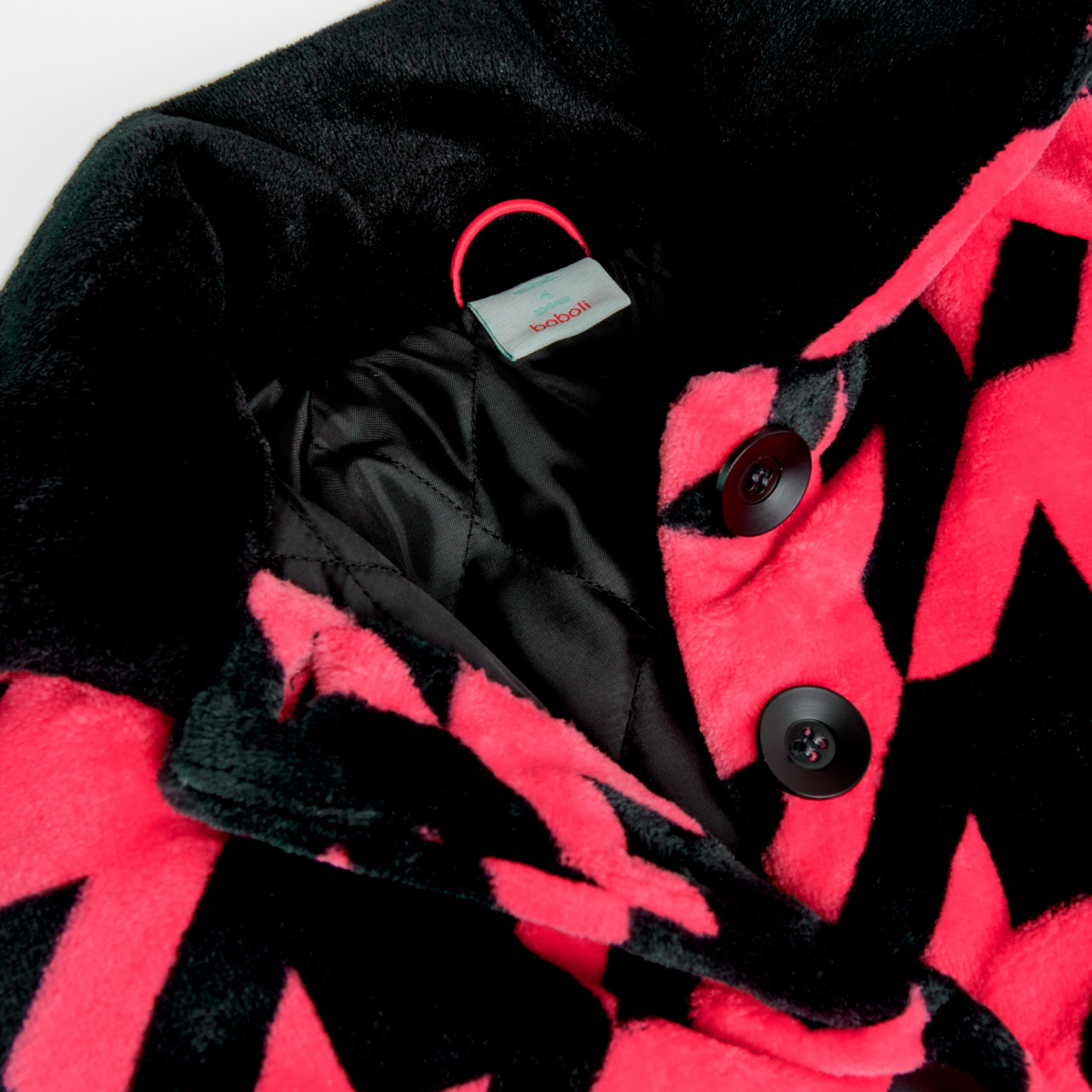 Palton matlasat pentru fete, material catifelat, model imprimat, roz cu negru, articolul face parte din Colectia Rock Boboli.