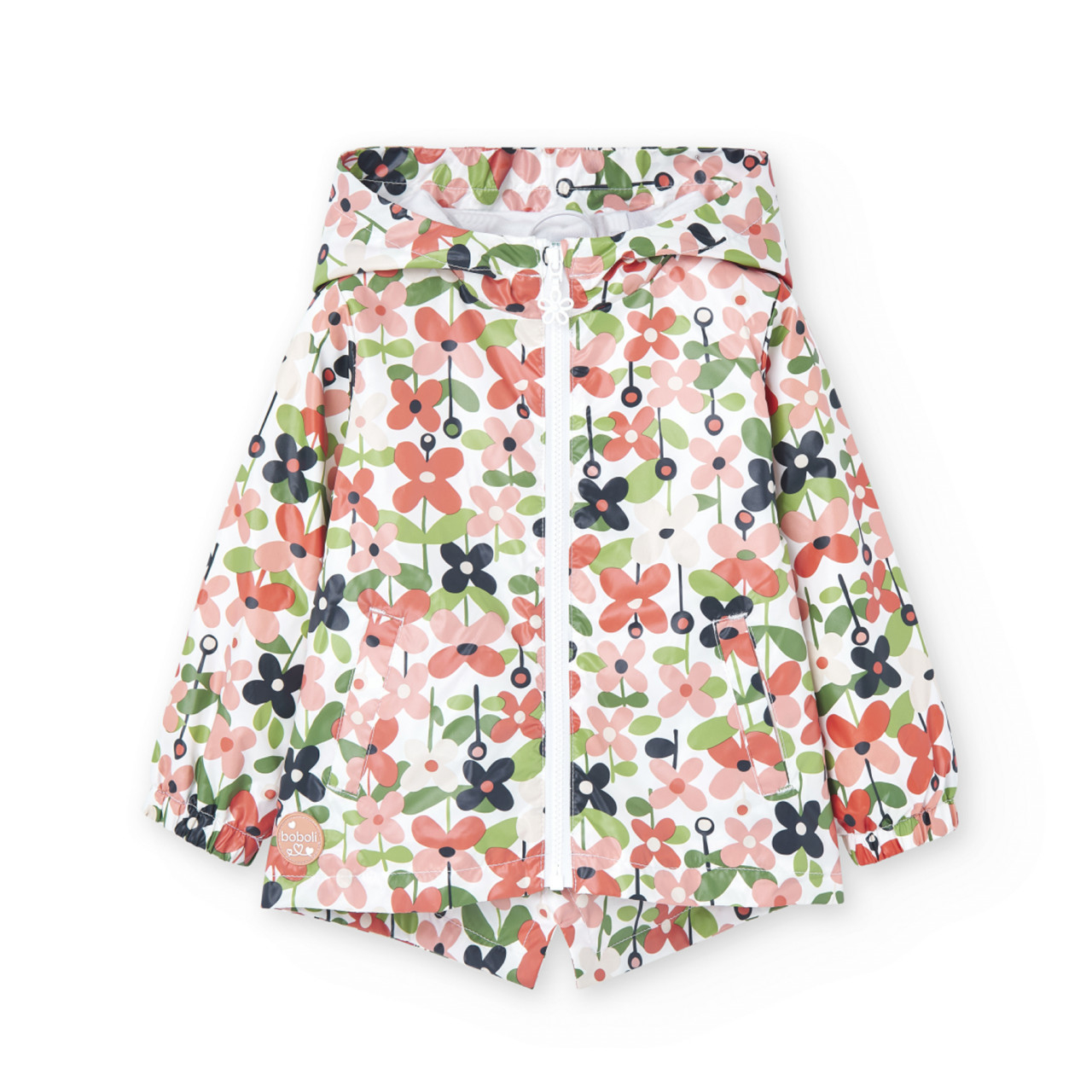 Geaca subtire de primavara pentru fetite cu gluga, antivant, imprimeu floral, captuseala bumbac.