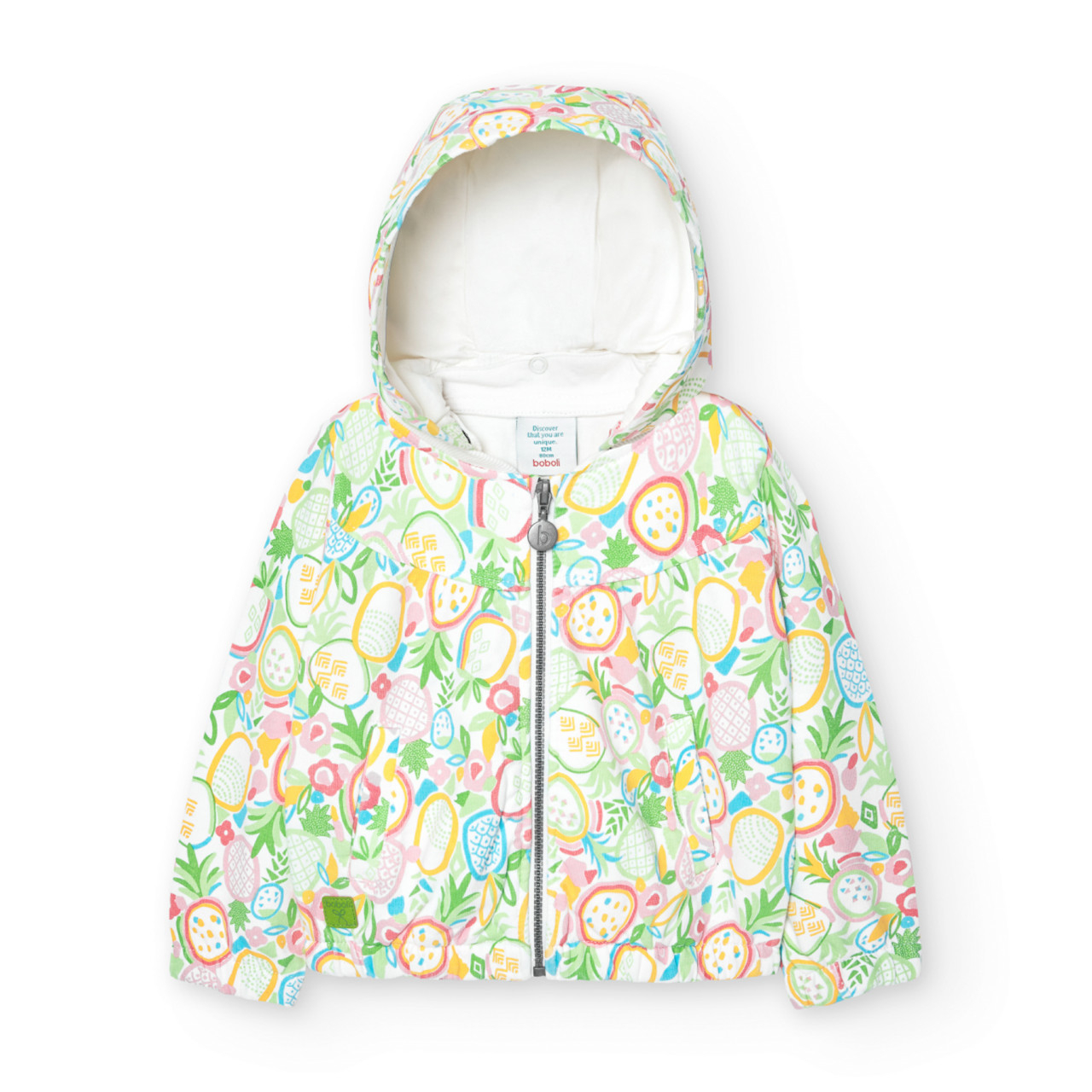 Hanorac fetite din bumbac better cotton, imprimeu ananas, gluga detasabila.