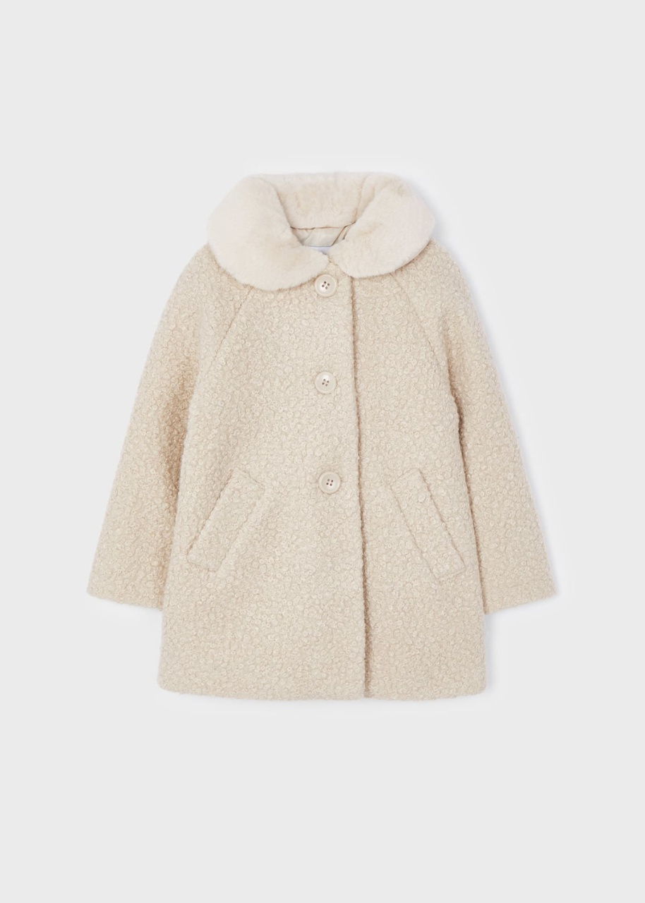 Pardesiu fete cu aspect carliontat, bej, guler blanita nedetasabil