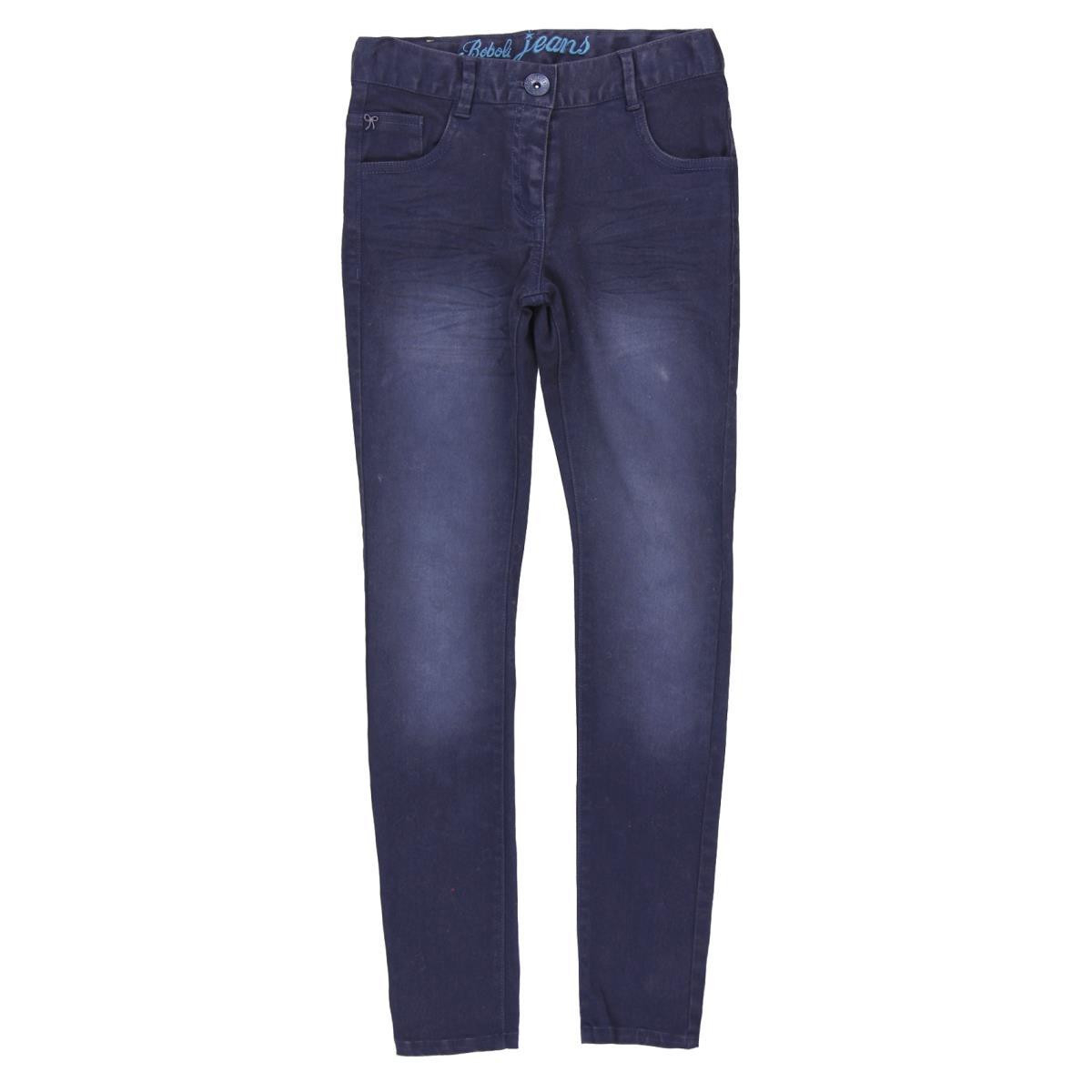 Pantaloni strech fete Boboli, material hiperflex in culoare navy pe baza de apa fara compusi chimici, cu aspect uzat si putin incretit , superconfortabili.