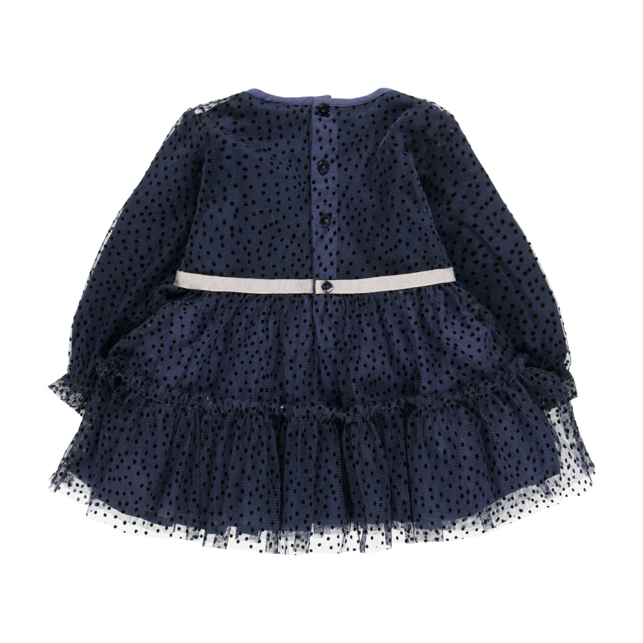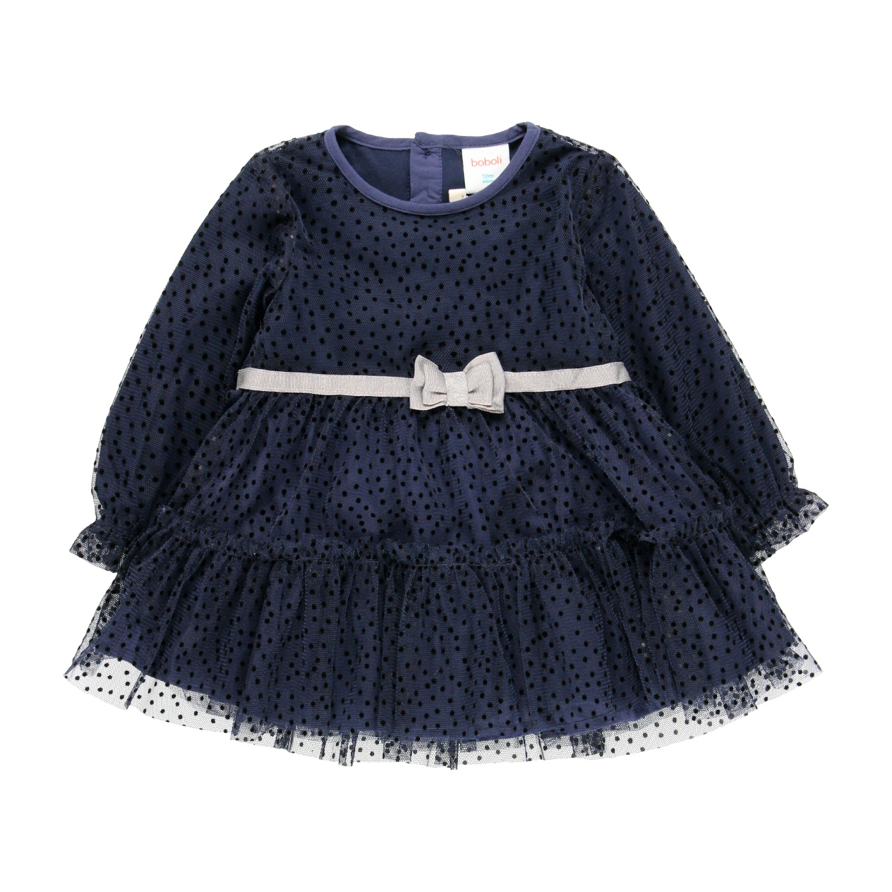 Rochie eleganta fetite 1-8 ani, tulle cu buline catifea, funda argintie, navy, brand Boboli.