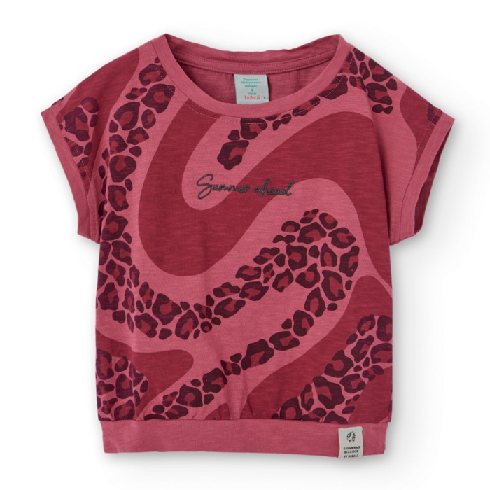Tricou fete din bumbac, brand Boboli, model scurt in talie, animal print, banda elastica in talie.