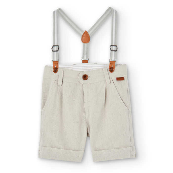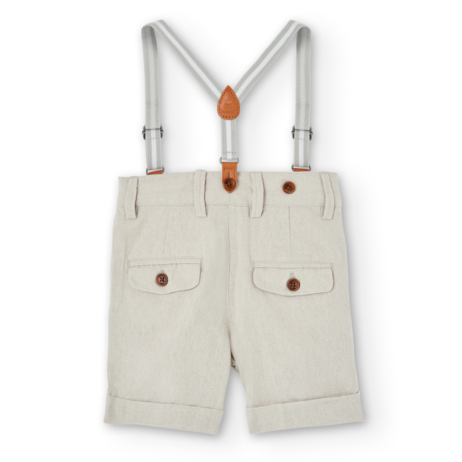 Pantaloni scurti bebe baiat cu bretele reglabile, material in, bej, buzunare,  brand Boboli