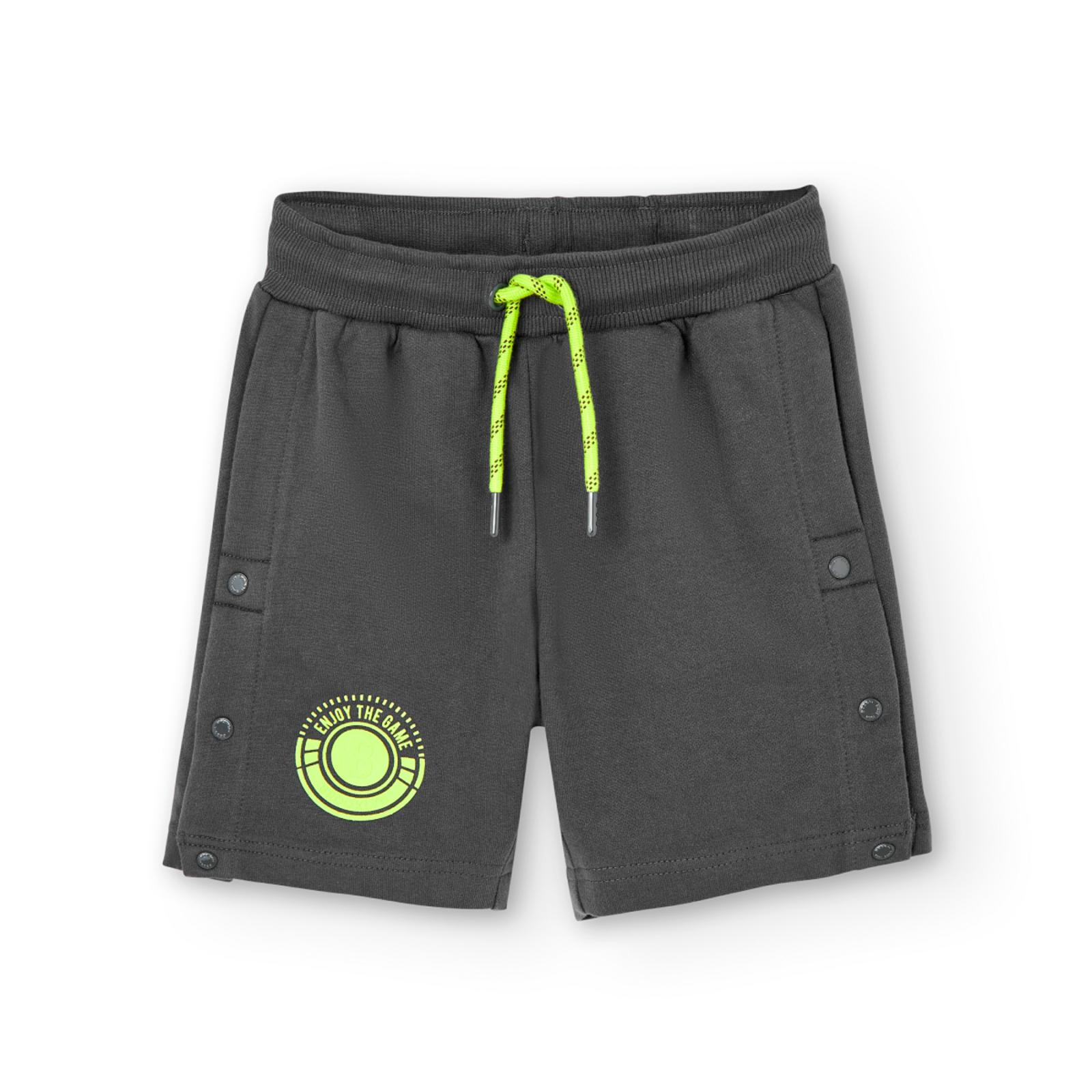 Pantaloni scurti baieti, bumbac, capse laterale, gri, brand Boboli