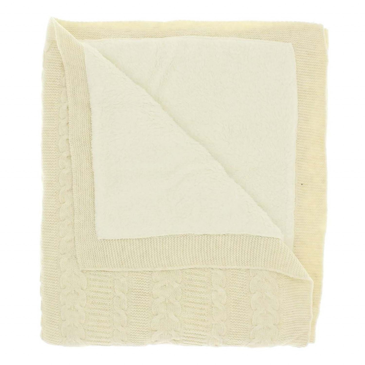 Paturica calduroasa pentru bebelusi din tricot cu blanita la interior, culoare crudo, marime 75x95 cm. Ideala atat pentru exterior cat si interior.