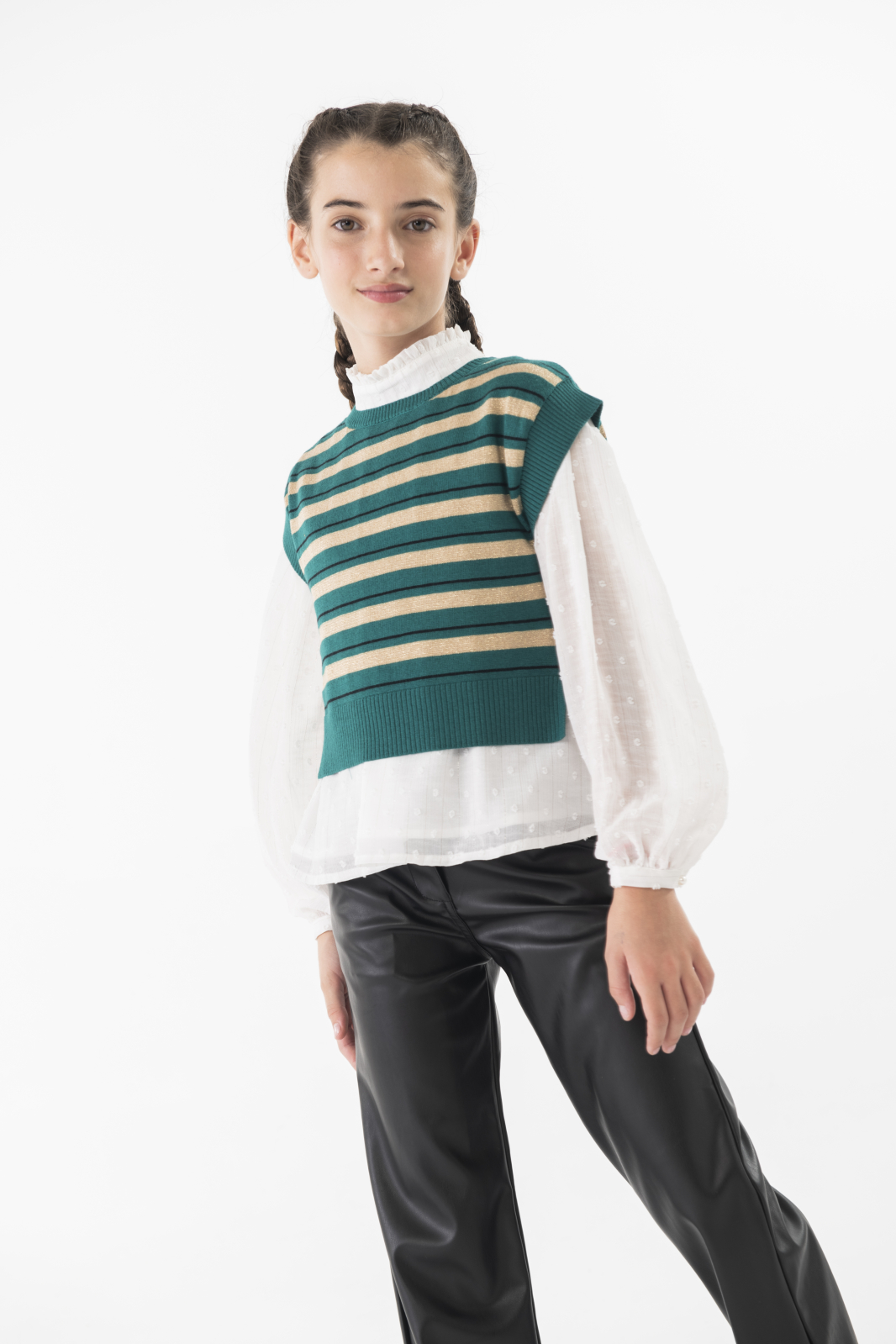 Vesta eleganta din tricot fin pentru fete 4-14 ani, dungi aurii, verde, brand Boboli