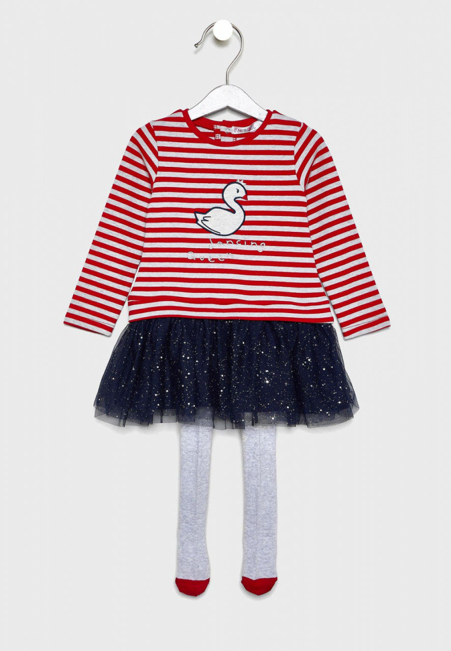 Rochie fetite cu maneca lunga Babybol, fusta tulle navy ,lebada queen brodata pe fata, dungi rosii, captuseala bumbac,dres inclus.Compozitie : 100% bumbac Brand Babybol Spania