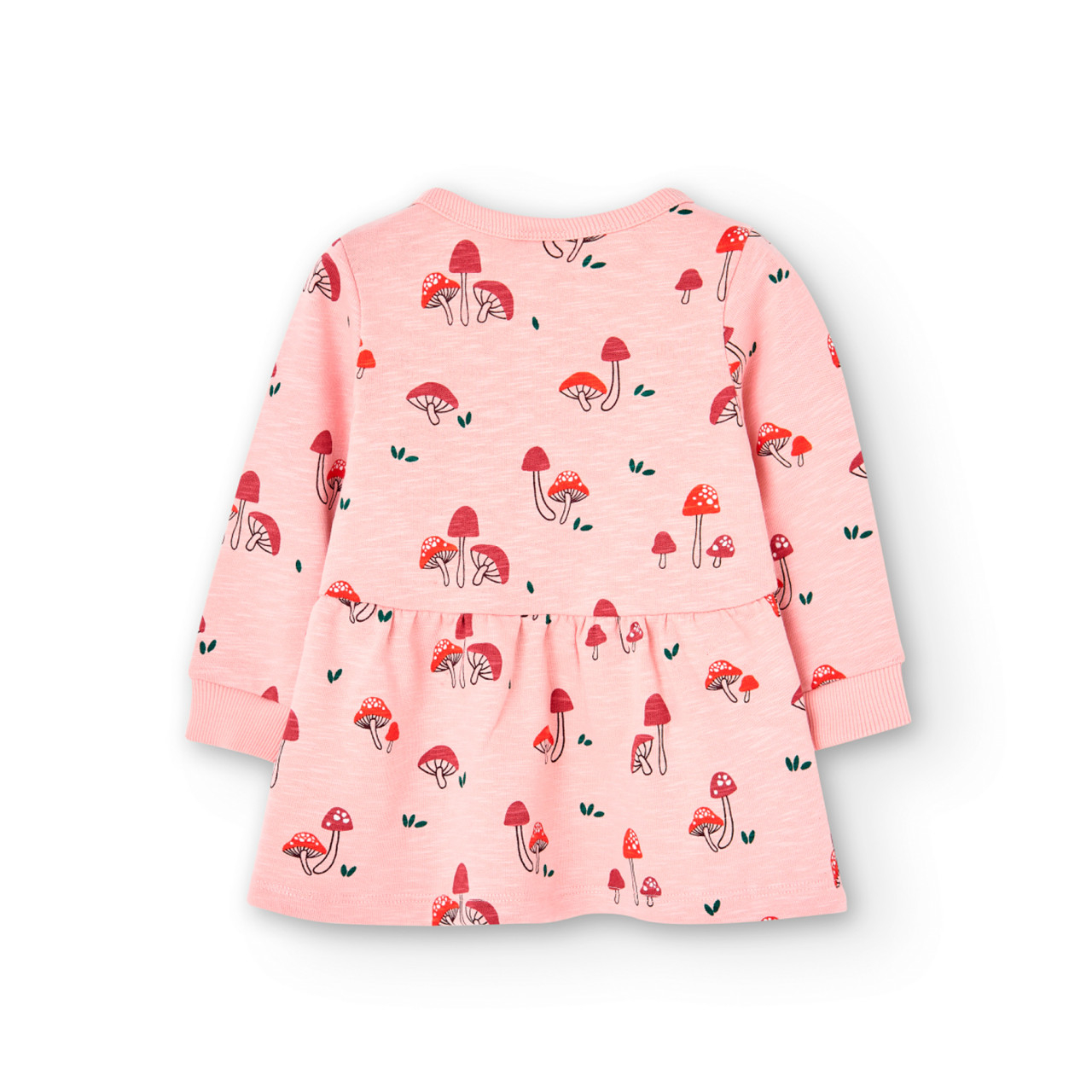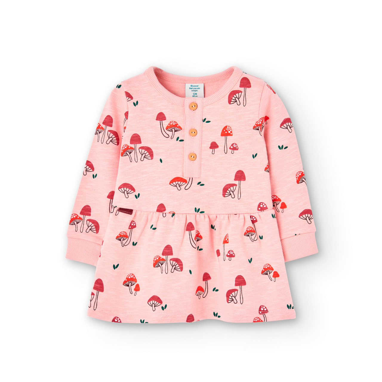 Rochie fete din bumbac cu maneca lunga Boboli, vatuita la interior, nasturi ornamentali culoarea lemnului, manseta elastica la maneca.