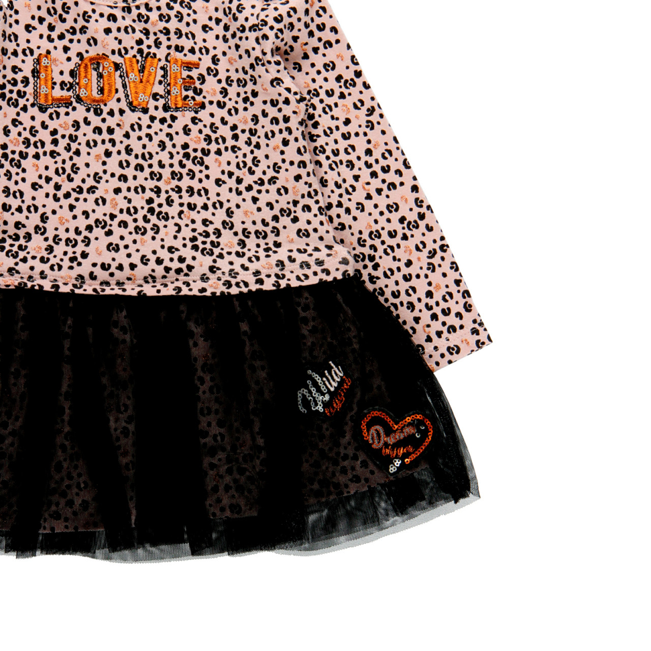 Rochie fete din jersey cu maneca lunga, animal print, fusta tulle, broderie cusuta pe fata.Brand Boboli