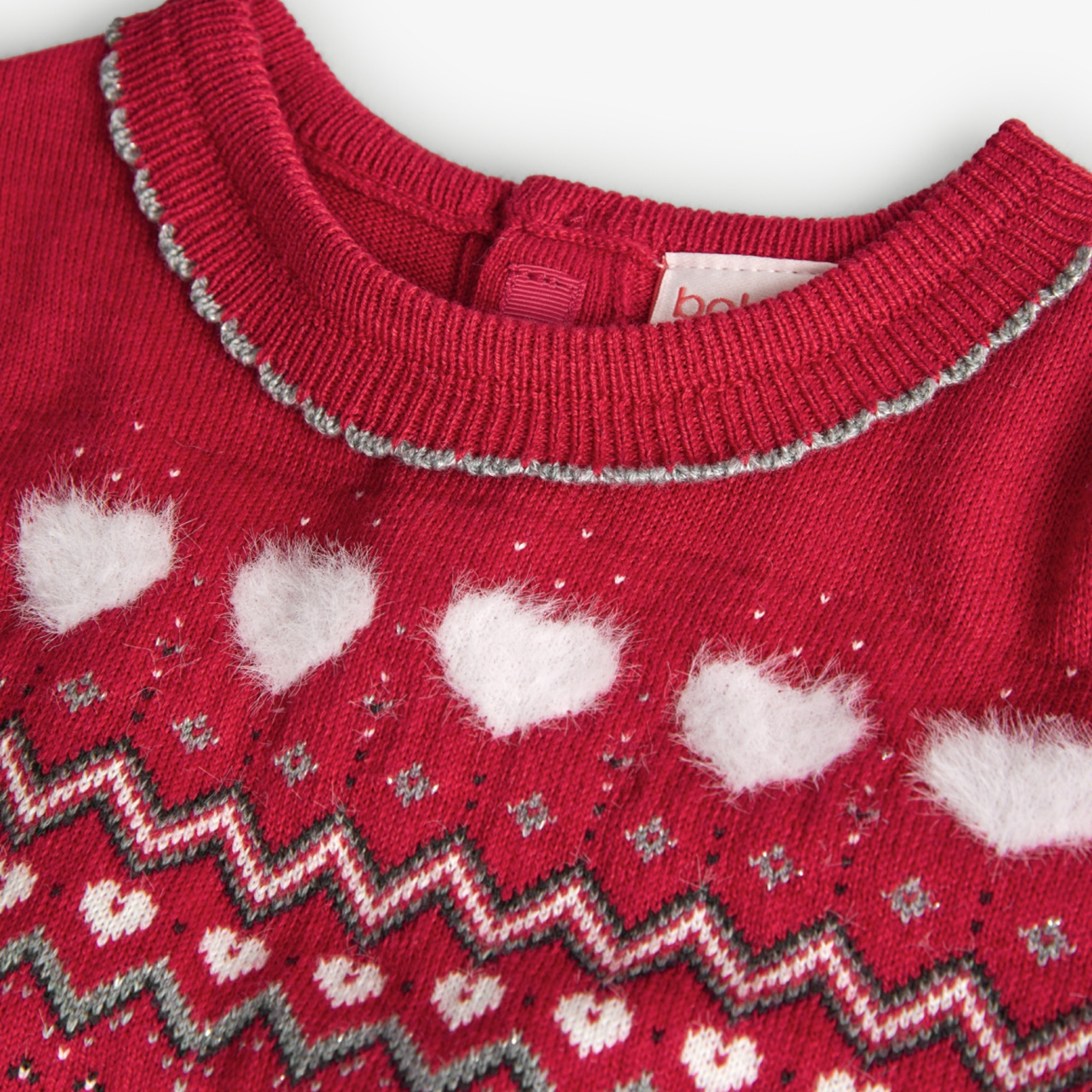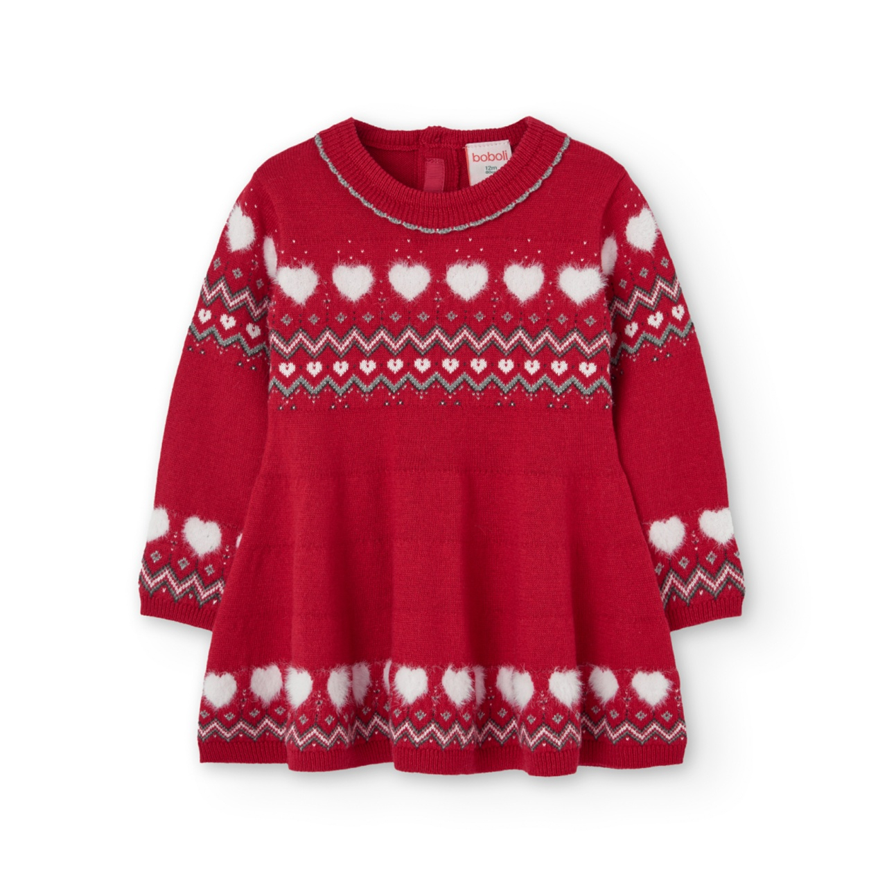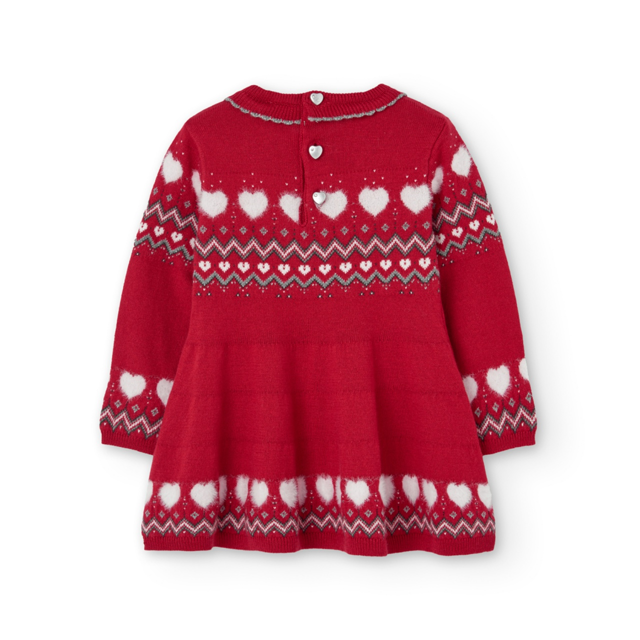 Rochie tricot fete, model cu inimioare albe, rosie, Boboli