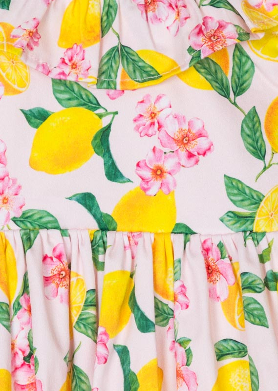 Rochie din satin cu spate decoltat, imprimeu floral si lamai, captuseala fina bumbac. Brand Losan