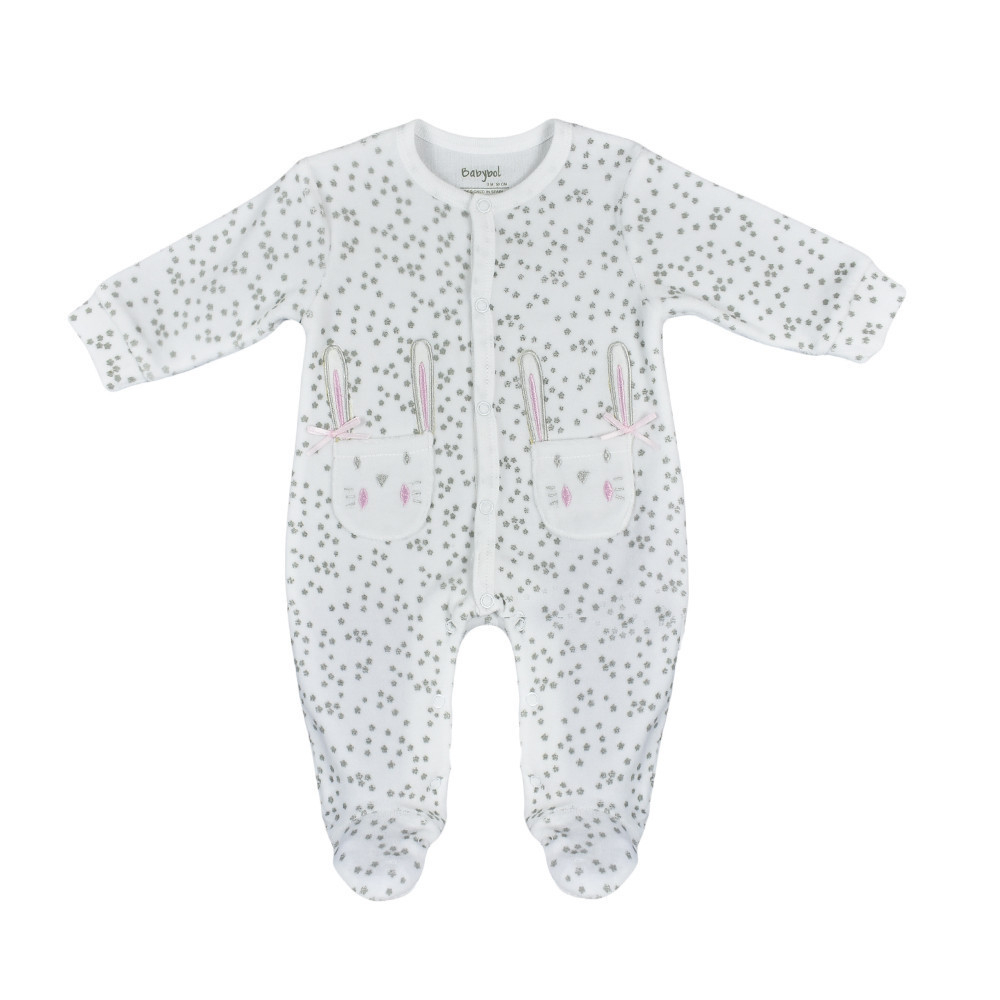 Babybol Salopeta catifea cu maneca lunga fetite 0-18 luni, stelute gri