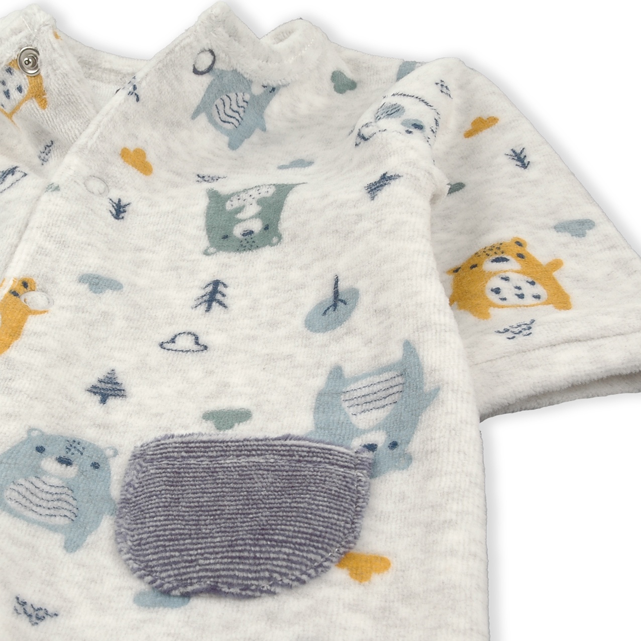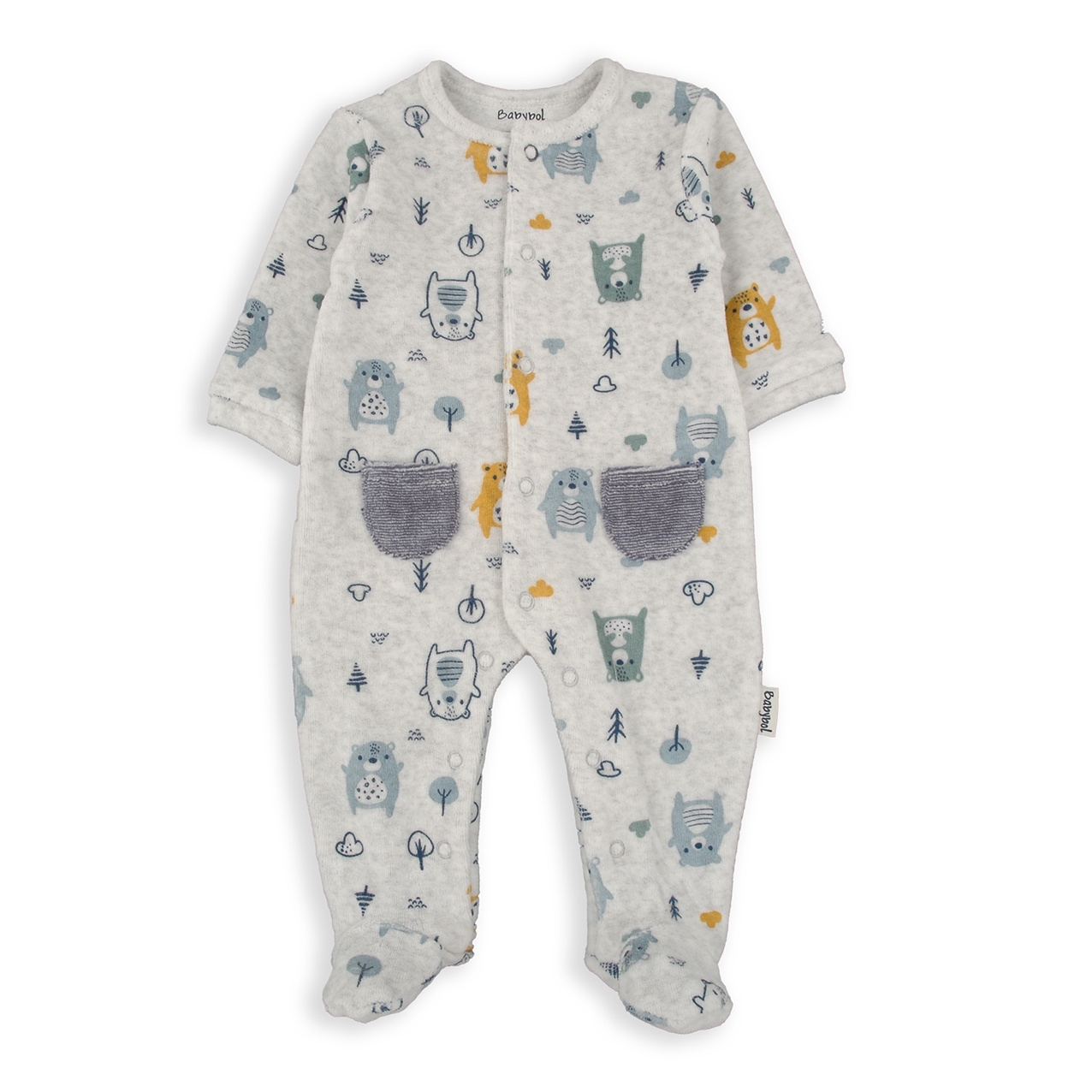 Salopeta bebe cu botosei si maneca lunga Babybol, bumbac catifelat, deschidere pe fata cu capse. Produsul este ambalat in cutie Babybol.