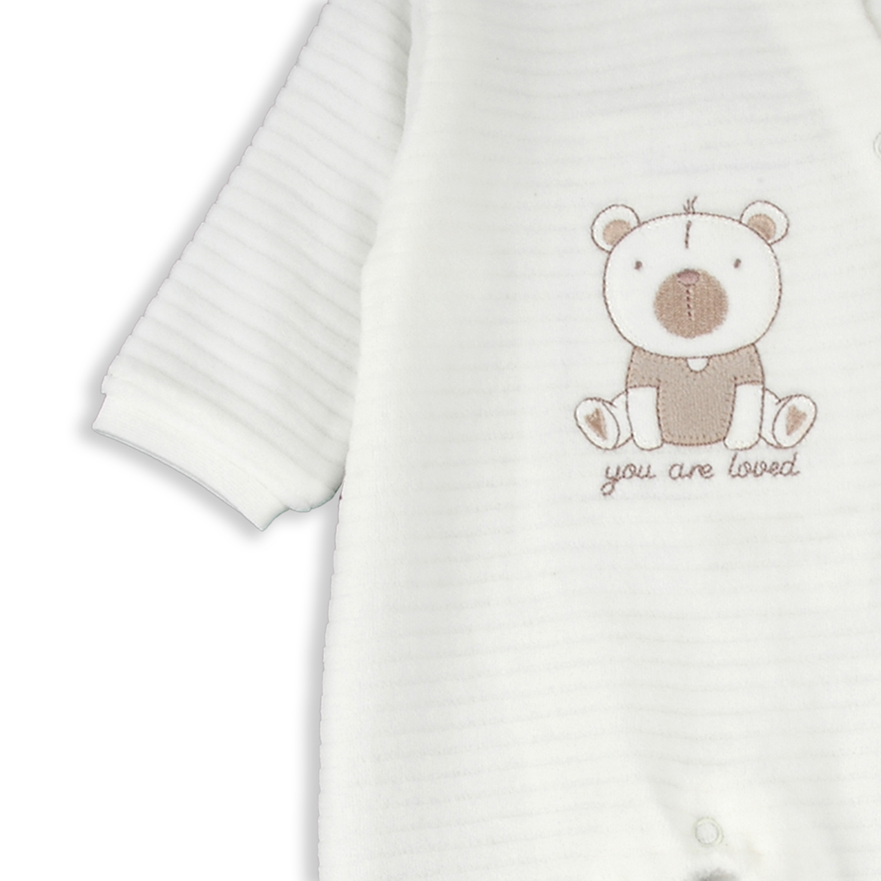 Salopeta bebe cu botosei, bumbac catifelat, broderie ursulet, inchidere pe lateral cu capse, ivoire, brand Babybol