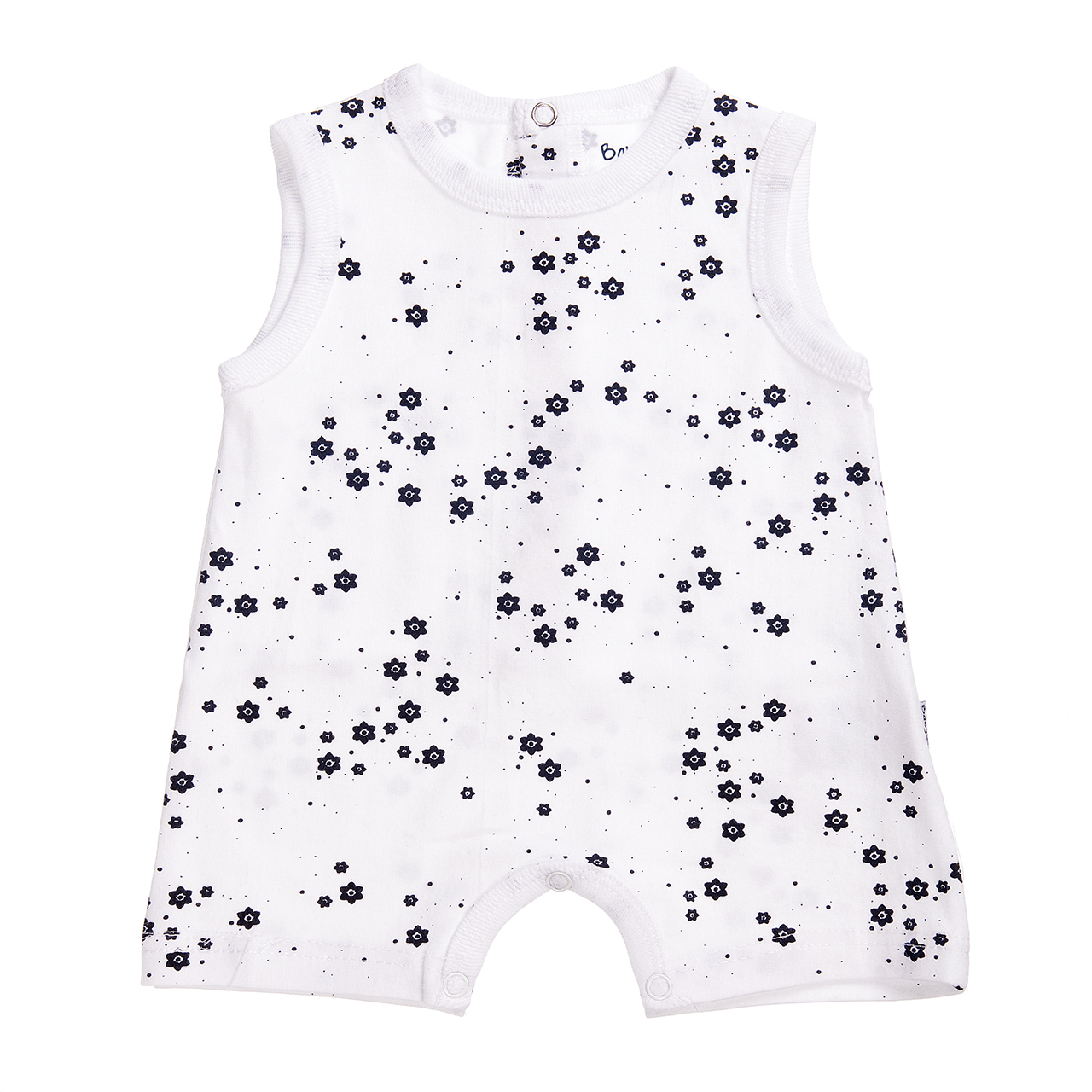 Pijama tip maieu bebe fetita, imprimeu flori albastre, inchidere spate cu 3 capse, brand Babybol