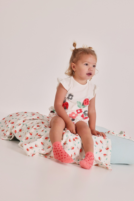 Salopeta bebe fetita maneca scurta, bumbac better cotton, gargarite, brand Boboli