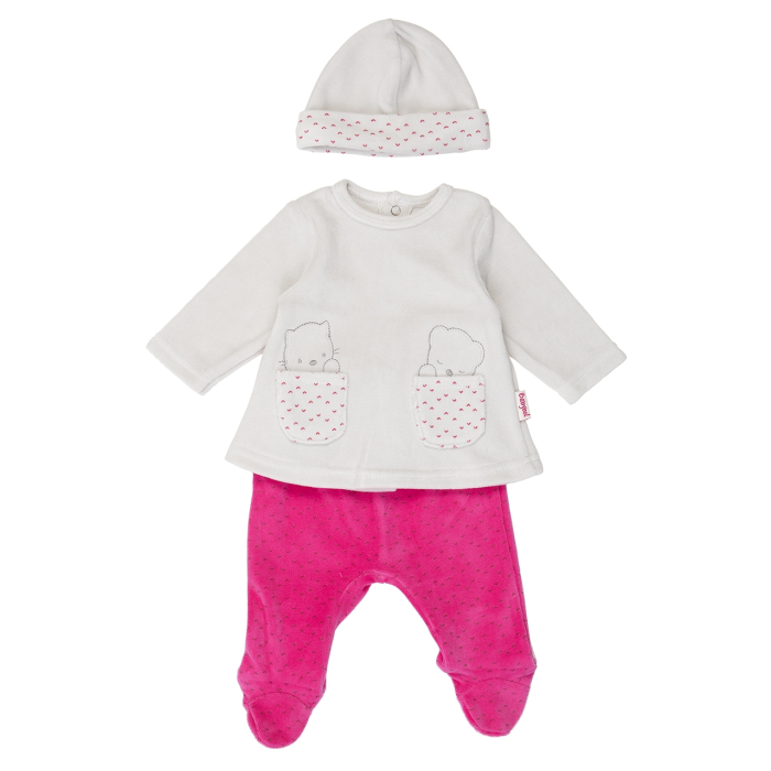 Set dragalas pentru fetite 0-9 luni din bumbac catifelat. Produsul vine ambalat in cutie Babybol.