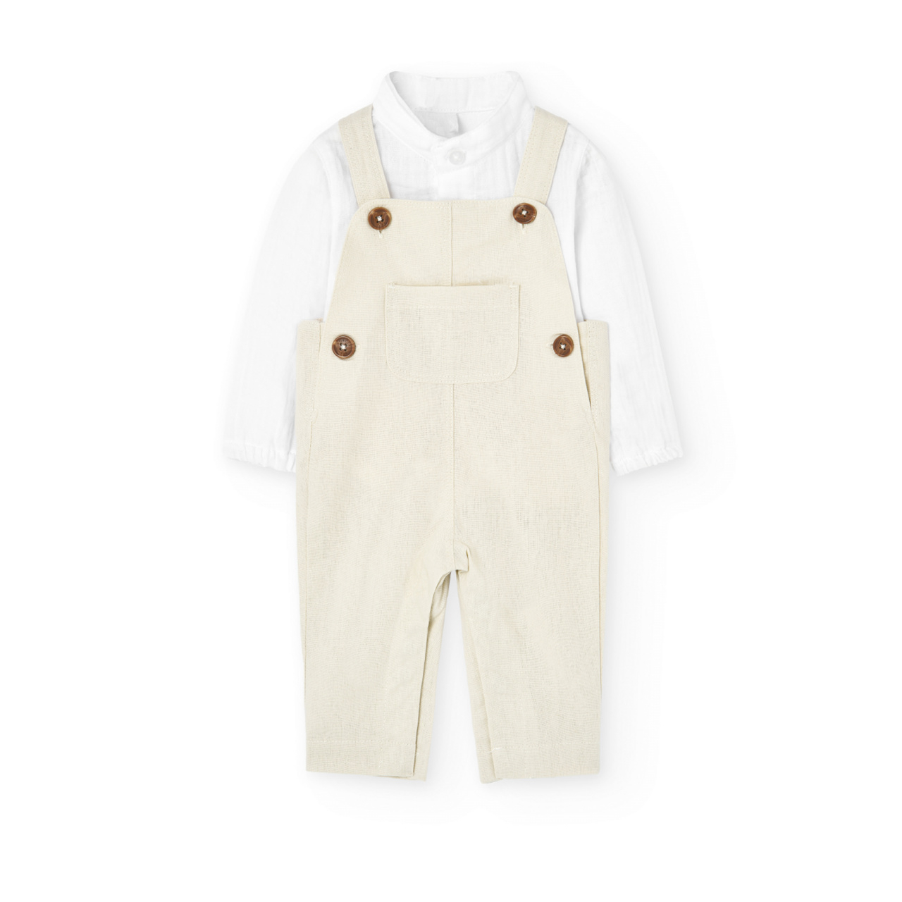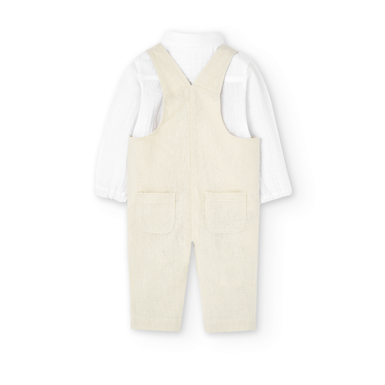 Compleu bebe baiat, camasa muselina alba cu salopeta in, Boboli