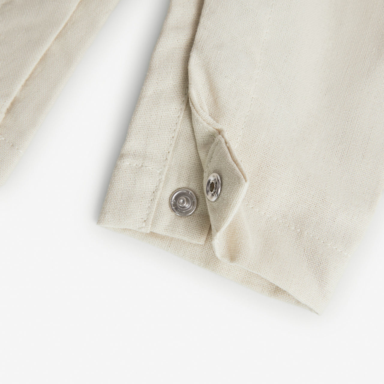 Acesta este un set elegant pentru băiețel, ideal pentru primăvară. Designul său alb simplu adaugă o notă de eleganță și prospețime. Prezintă un guler mao și mâneci lungi, perfecte pentru a-l proteja pe micuțul dvs. de soare. Țesătura din in asigură confort și libertate de mișcare. Disponibil în mărimi de la 0 luni la 2 ani, acest set este o alegere versatilă pentru orice ocazie. Închiderea cu nasturi facilitează îmbrăcarea și dezbrăcarea bebelușului. O ținută practică și elegantă pentru copilul dumneavoastră.