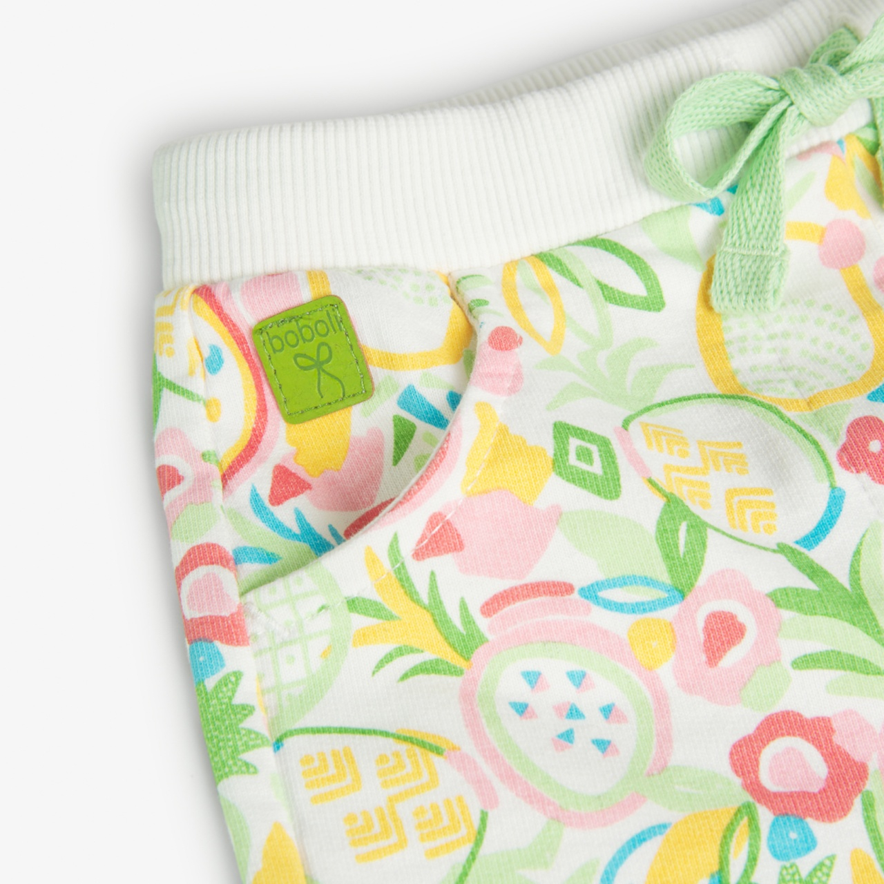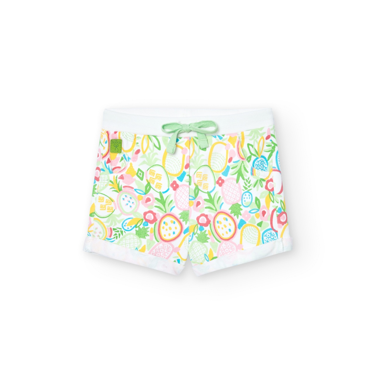 Pantaloni scurti fete 1-8 ani, bumbac, imprimeu ananas, banda elastica, buzunare, verde, brand Boboli