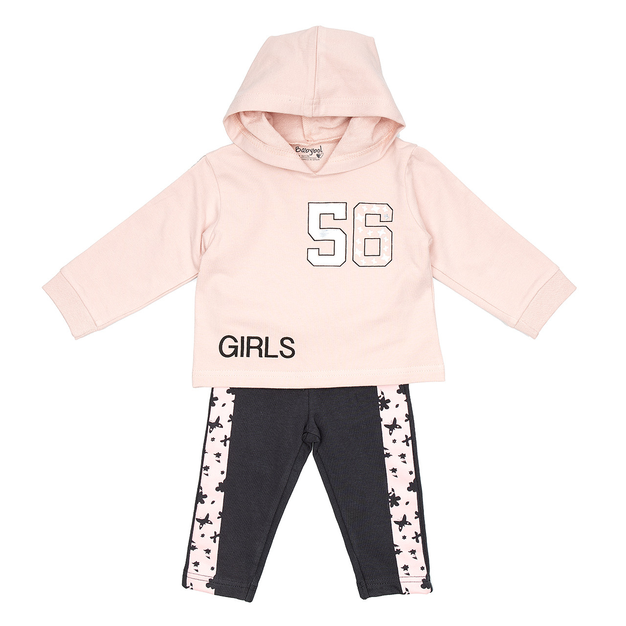 Set sport pentru fetite din 2 piese, tricou maneca lunga si gluga si pantalon tip colant .Brand BabybolMade Spania