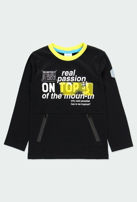 Tricou maneca lunga copii, bumbac 100%, negru cu verde, brand Boboli