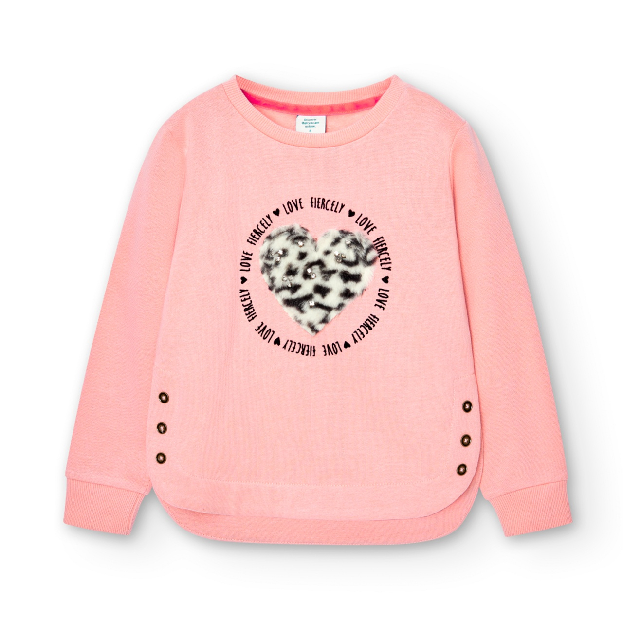 Bluza fete bumbac vatuit, maneca lunga, broderie inima cu strasuri, roz, Boboli