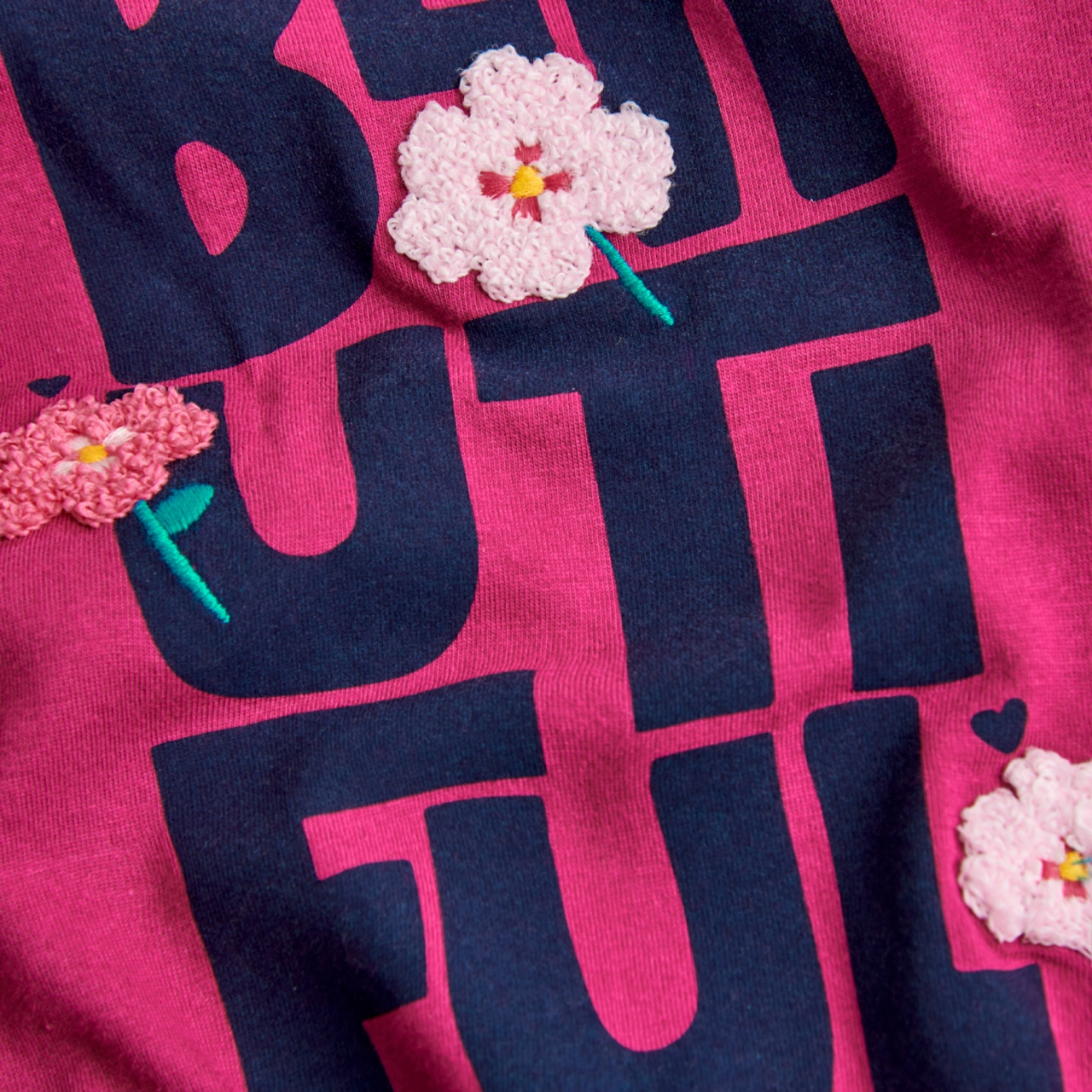 Tricou fete maneca lunga, bumbac, broderie florala, ciclam, brand Boboli