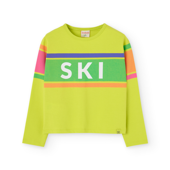 Tricou maneca lunga fete, bumbac, imprimeu text,verde lime, brand Boboli