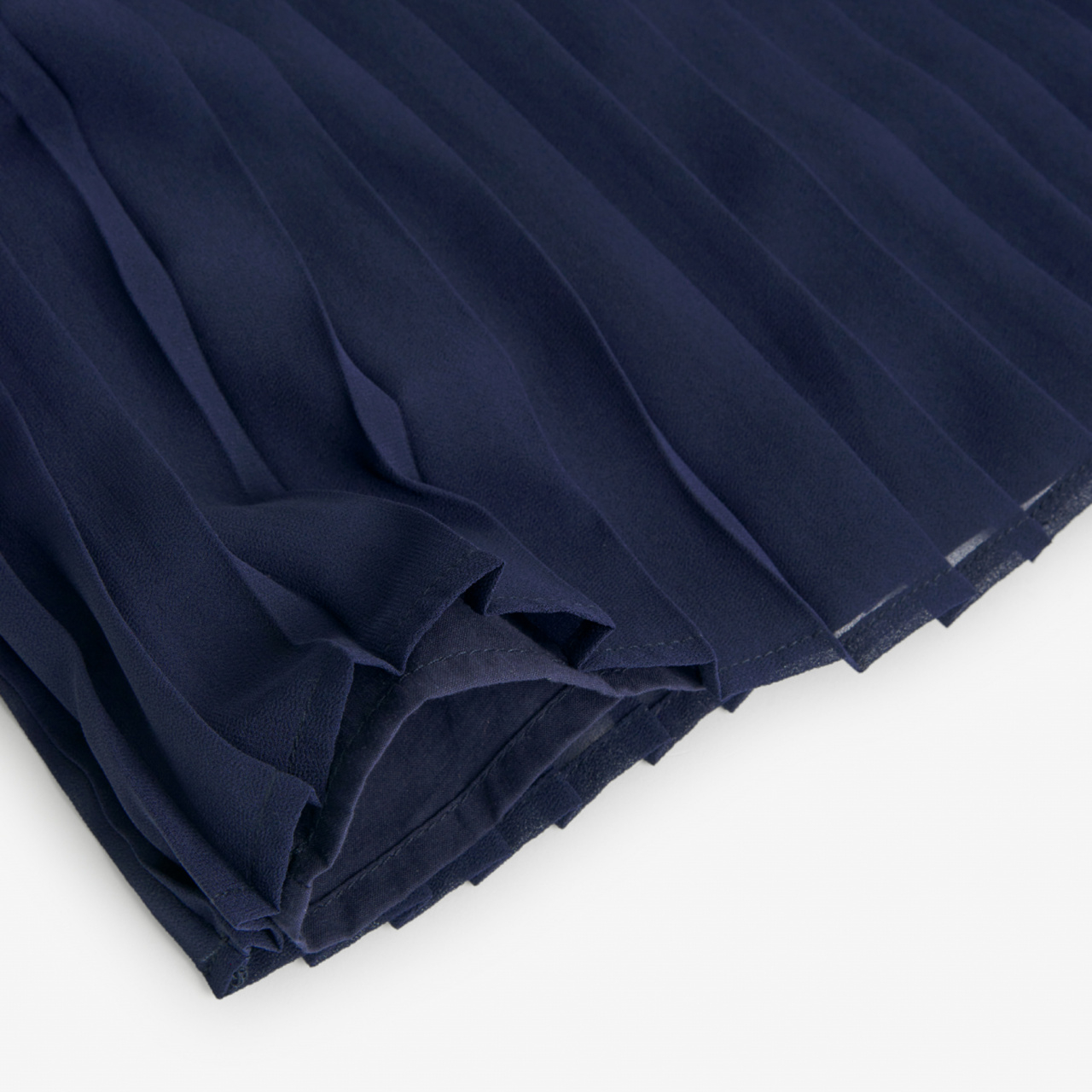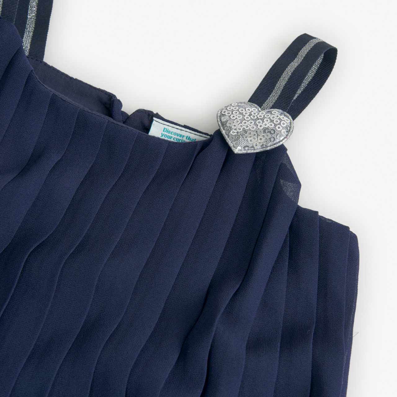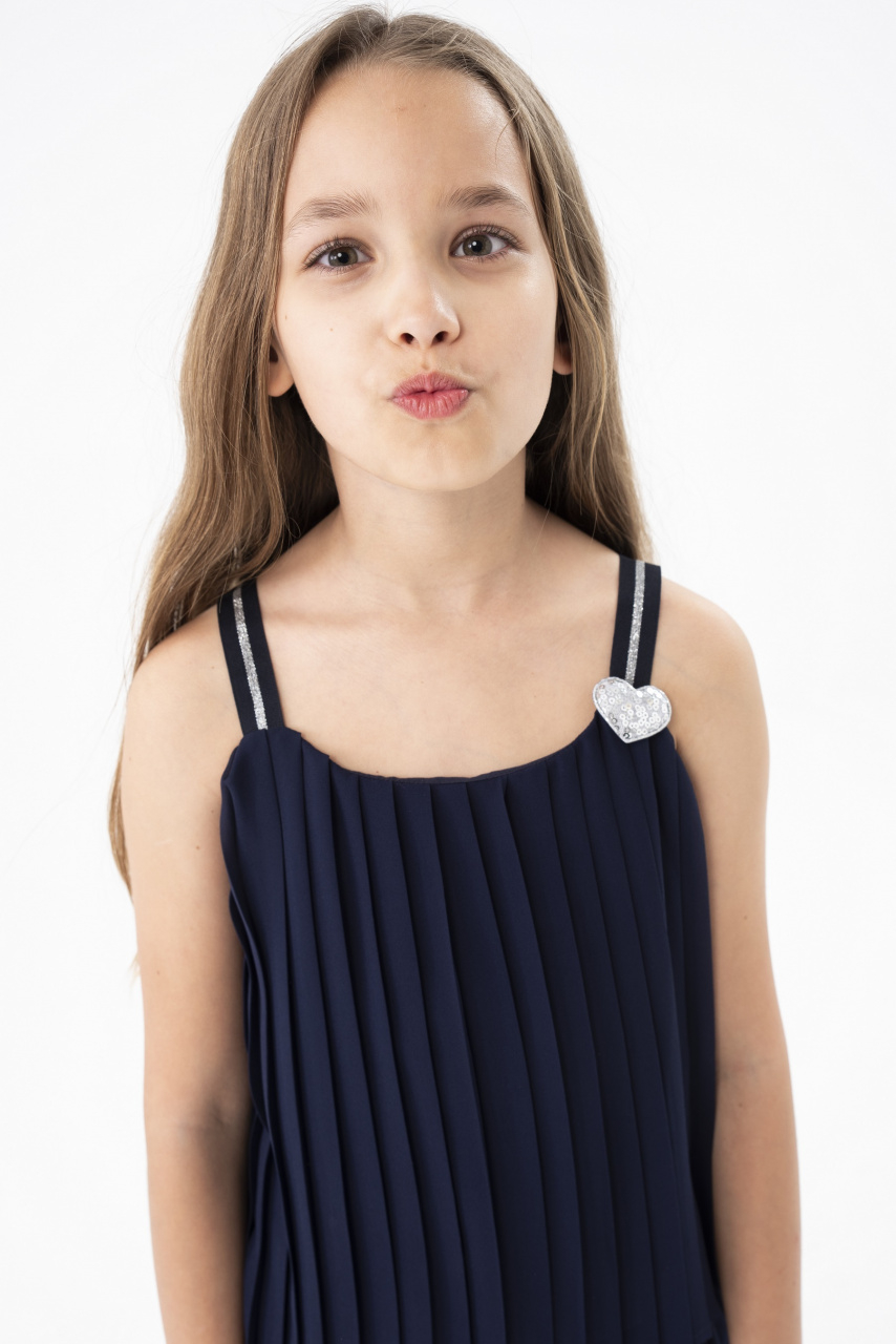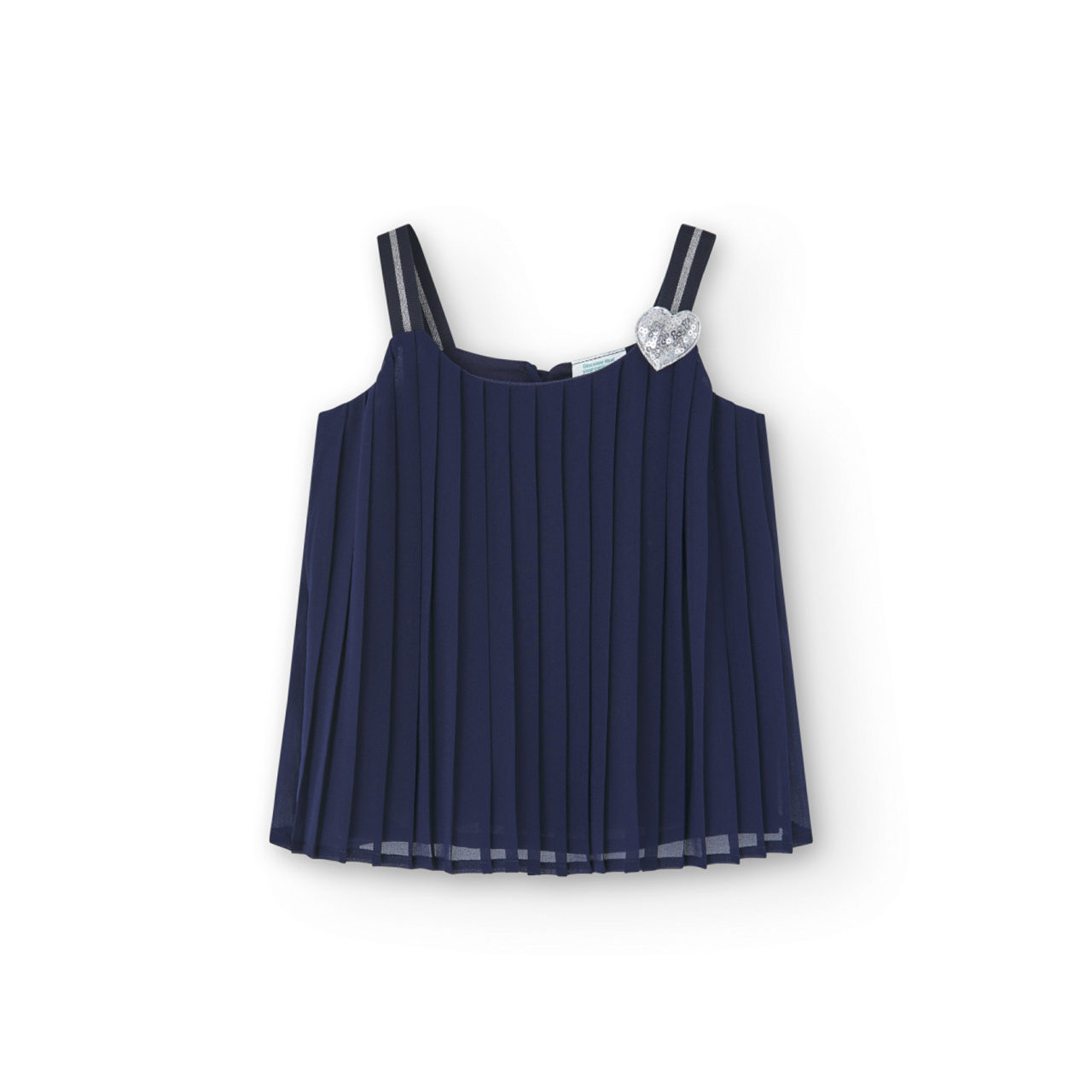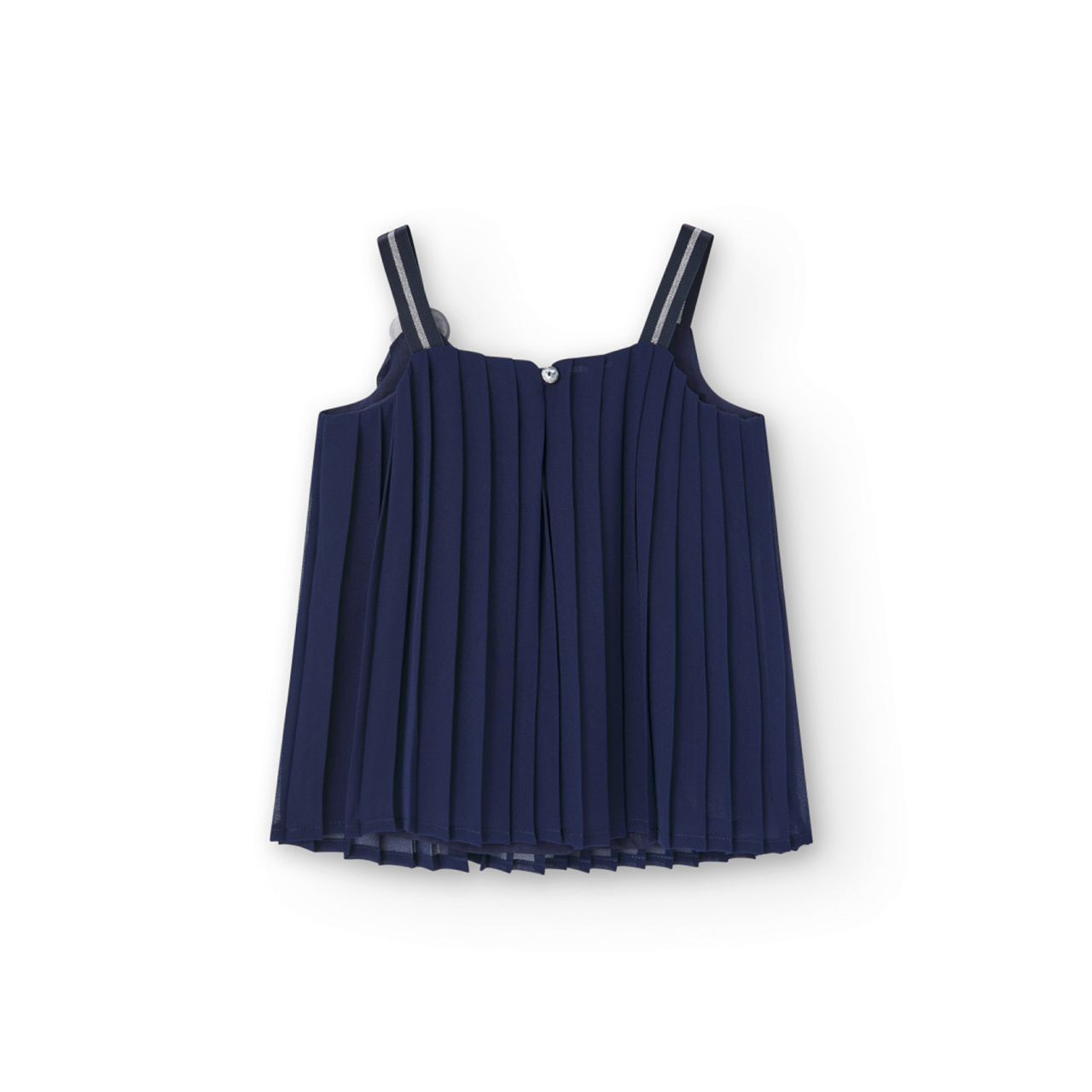 Top fete cu bretele, chifon plisat, captuseala bumbac fin, albastru marin, brand BOBOLI.
