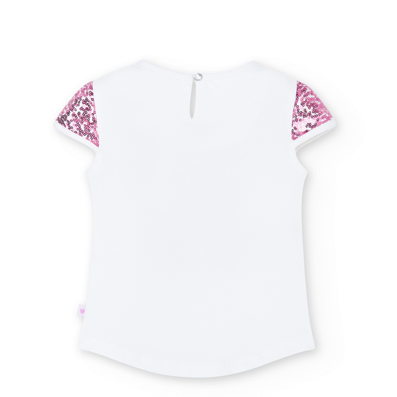 Acest top din tricou cu nervuri pentru fete este ideal pentru sezonul de primăvară și vară. Cu un imprimeu viu și colorat, este perfect pentru a adăuga o notă de distracție la orice ținută. Țesătura tricotată este moale și confortabilă, ideală pentru joacă și activitatea de zi cu zi. Tricoul are un gât rotund și mâneci scurte, ceea ce îl face să fie răcoros și ușor de purtat. Disponibil în mărimile de la 4 la 16, este un articol de îmbrăcăminte versatil care poate crește odată cu micuțul tău. Culoarea sa albă îl face ușor de asortat cu orice ținută.